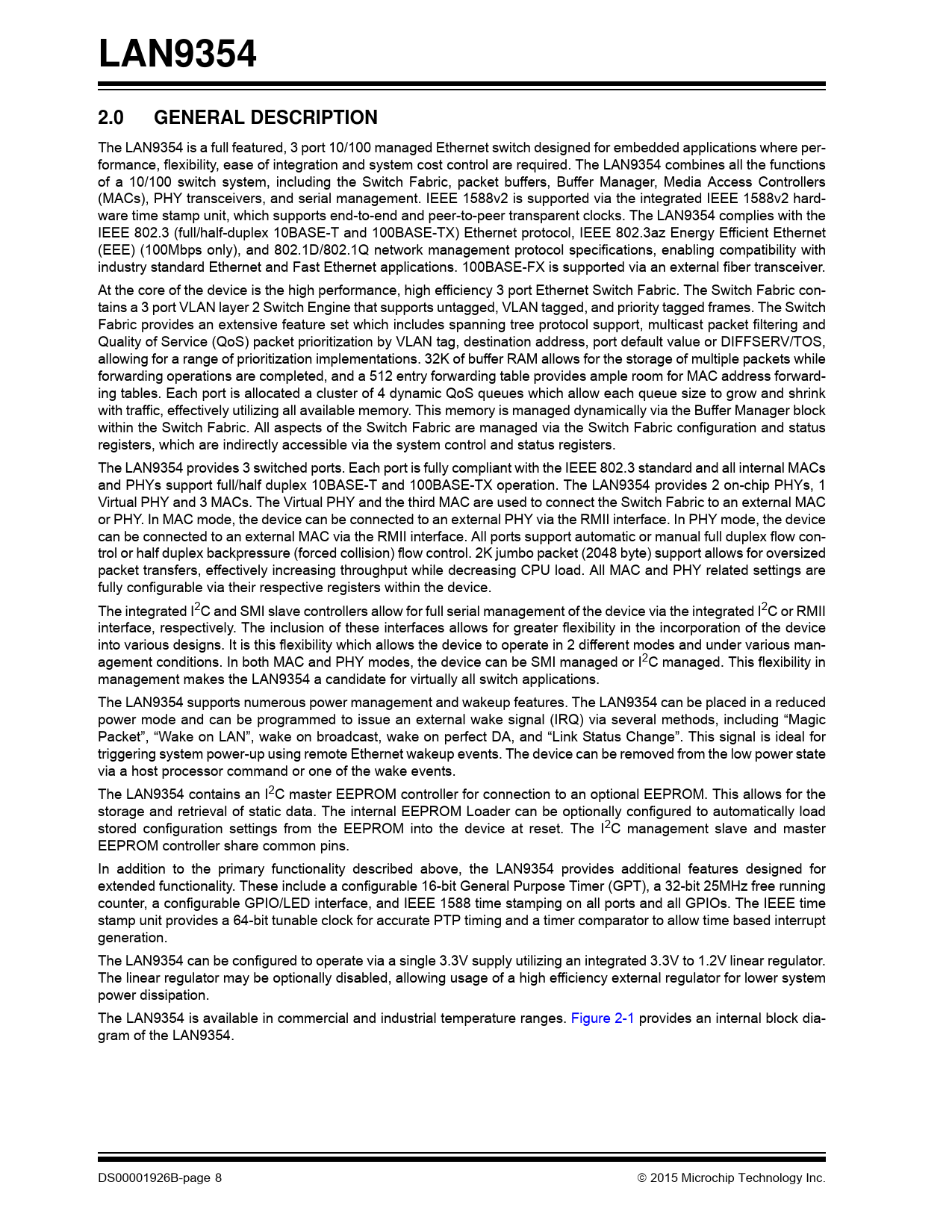 LAN9354. 2.0. GENERAL DESCRIPTION