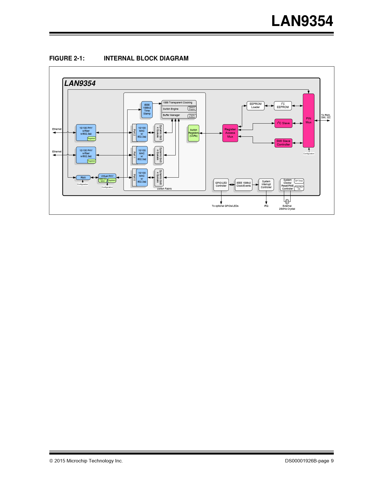 LAN9354 FIGURE 2-1: INTERNAL BLOCK DIAGRAM LAN9354