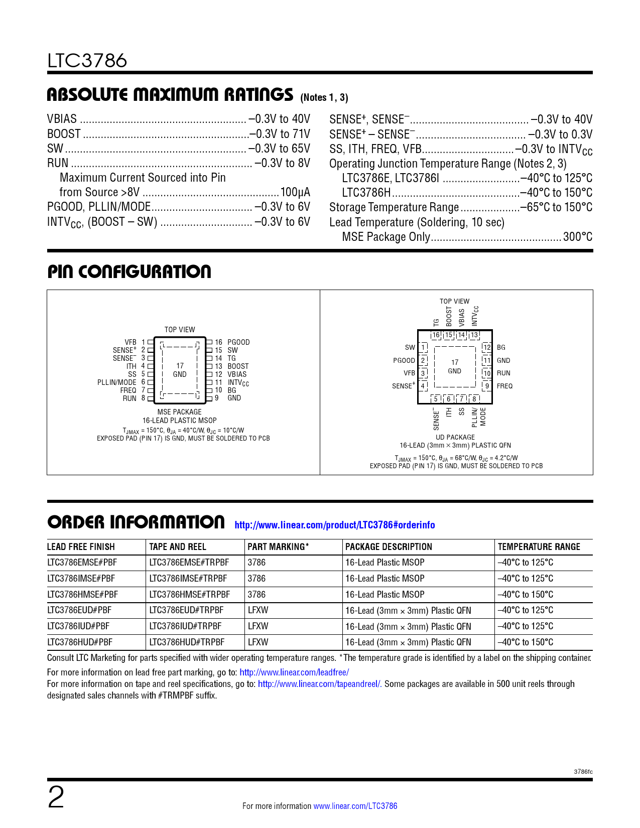 Seiten / Seite34 / 2 — (Notes 1, 3). http://www.linear.com/product/LTC3786#orderinfo LEAD FREE …