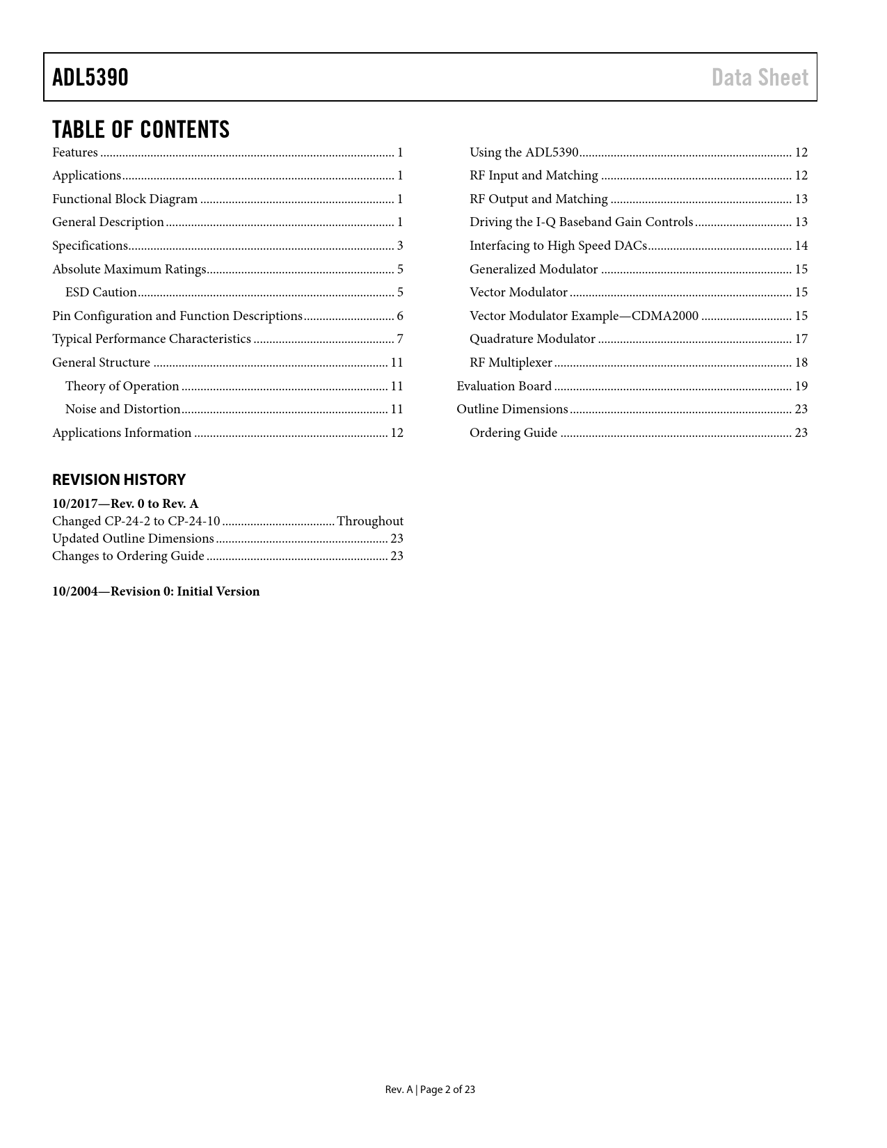 ADL5390 Data Sheet TABLE OF CONTENTS REVISION HISTORY 10/2017—Rev 0 to Rev A 10/2004—Revision 0: Initial Version