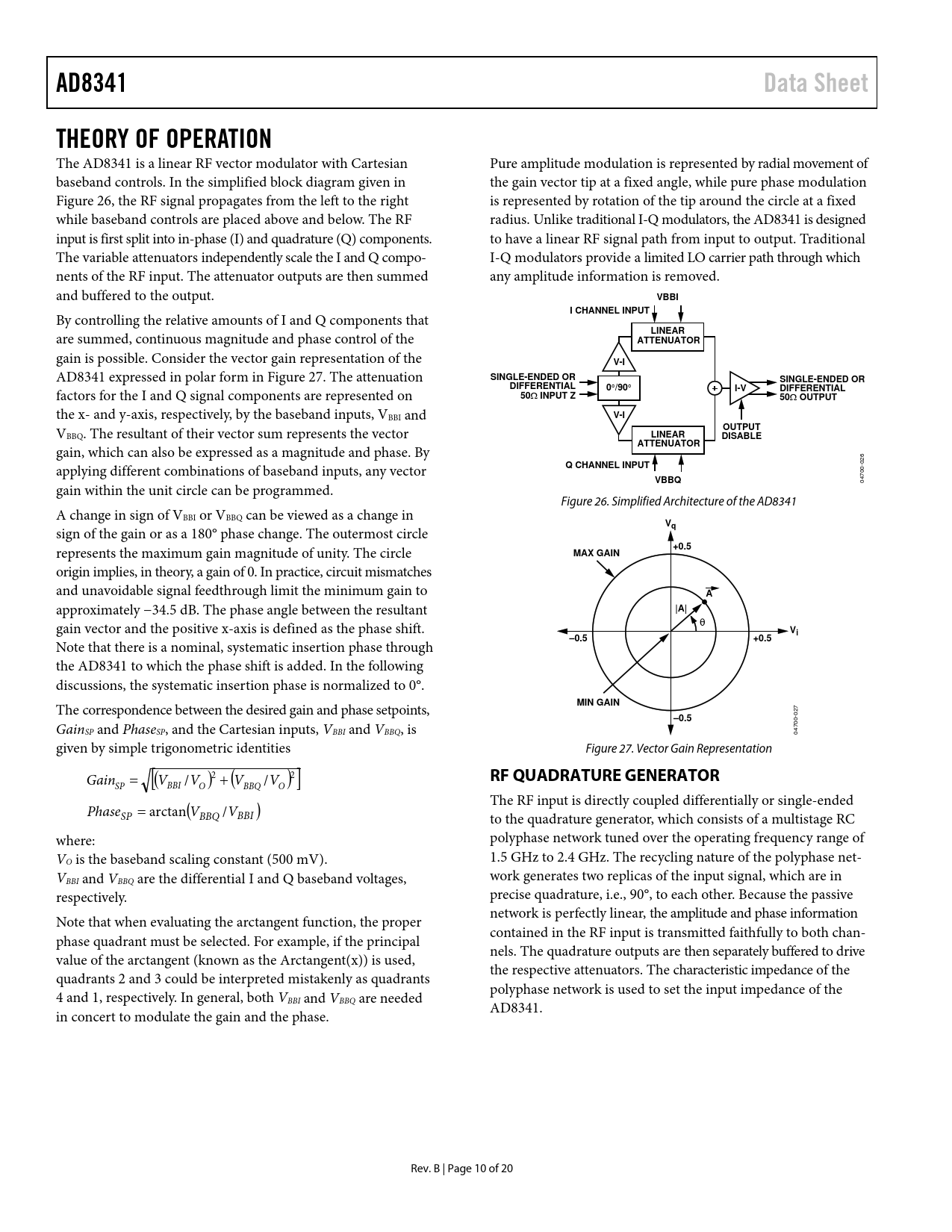 gain within the unit circle can be programmed. 04700-026 Figure 26. Simplified Architecture of the AD8341 A change in sign of VBBI or VBBQ can be viewed as a change in