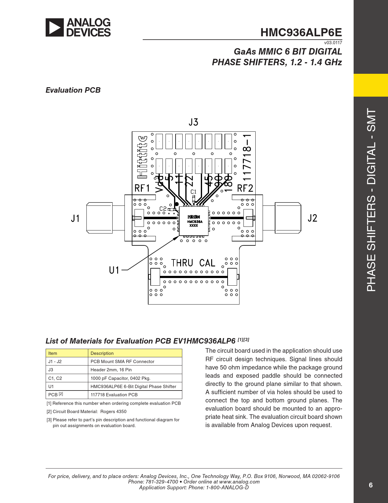 HMC936ALP6E. GaAs MMIC 6 BIT DIGITAL. PHASE SHIFTERS, 1.2 - 1.4 GHz. Evaluation PCB