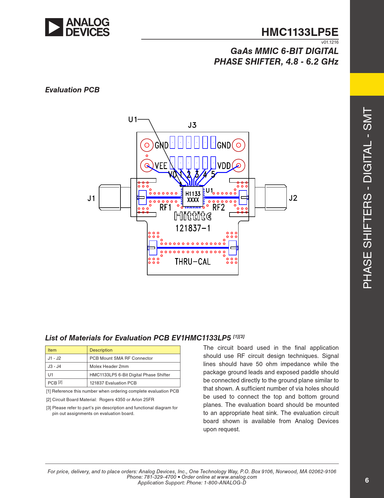 HMC1133LP5E. GaAs MMIC 6-BIT DIGITAL. PHASE SHIFTER, 4.8 - 6.2 GHz. Evaluation PCB