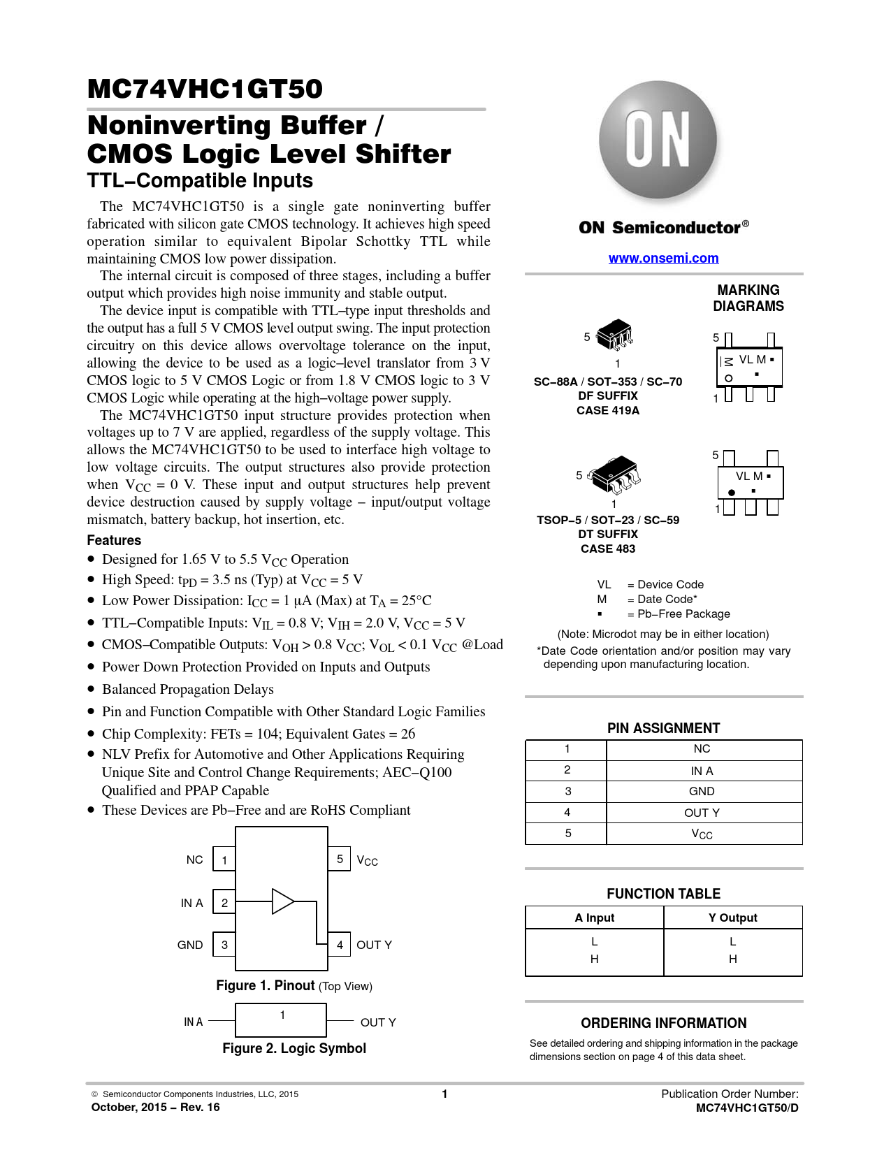 Datasheet MC74VHC1GT50 (ON Semiconductor)