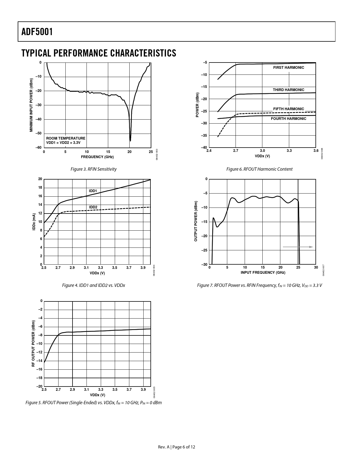 40 08 08 Figure 4. IDD1 and IDD2 vs. VDDx Figure 7. RFOUT Power vs. RFIN Frequency, fIN = 10 GHz, VDD = 3.3 V