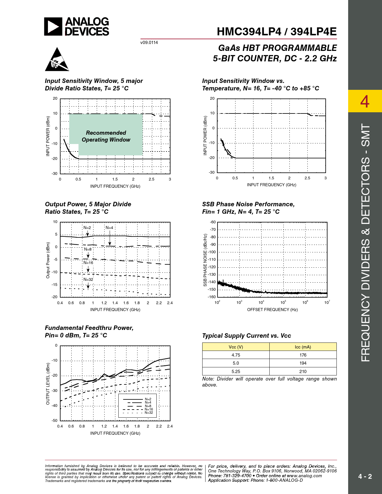 HMC394LP4 / 394LP4E. GaAs HBT PROGRAMMABLE. 5-BIT COUNTER, DC - 2.2 GHz. Input Sensitivity Window, 5 major