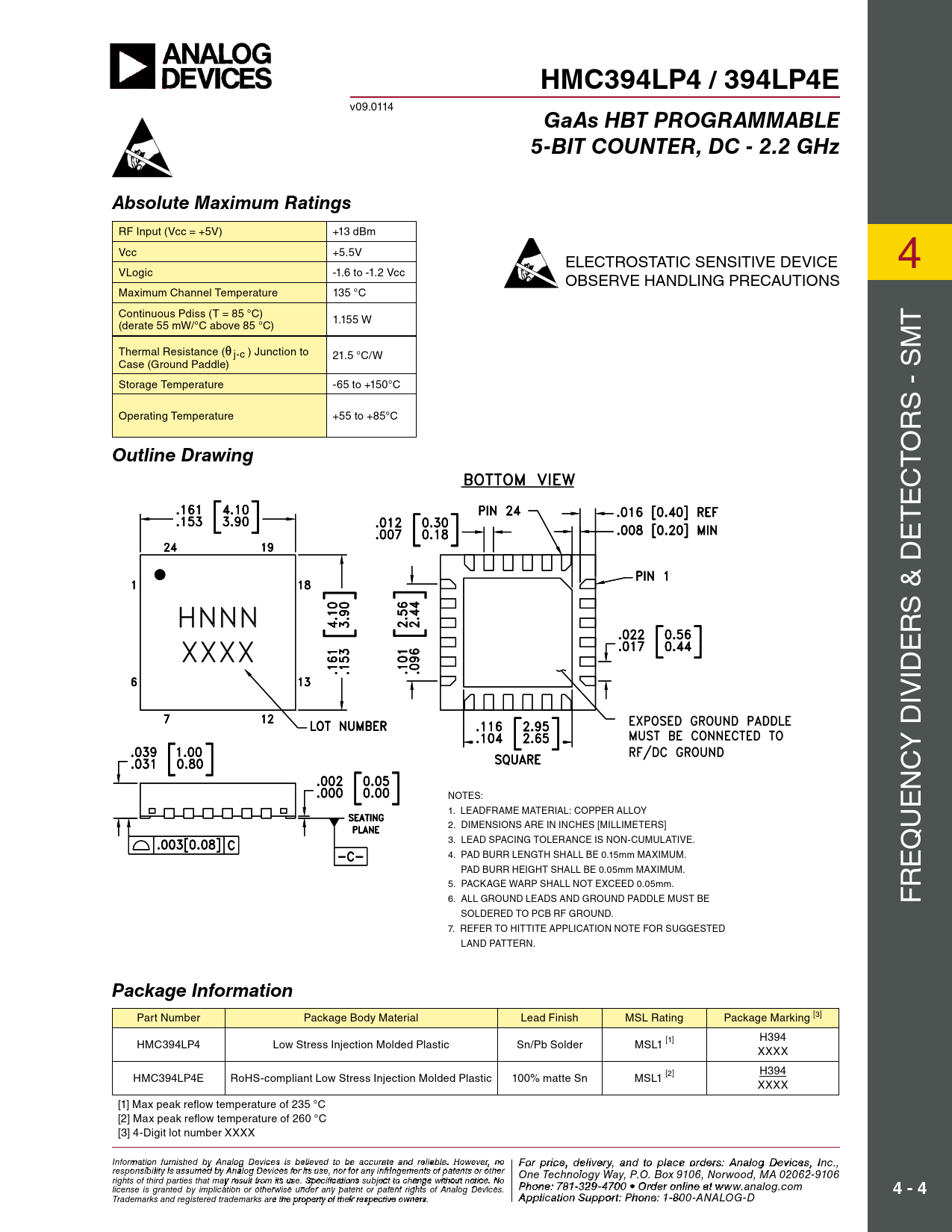 Datasheet HMC394LP4, 394LP4E (Analog Devices) - 4