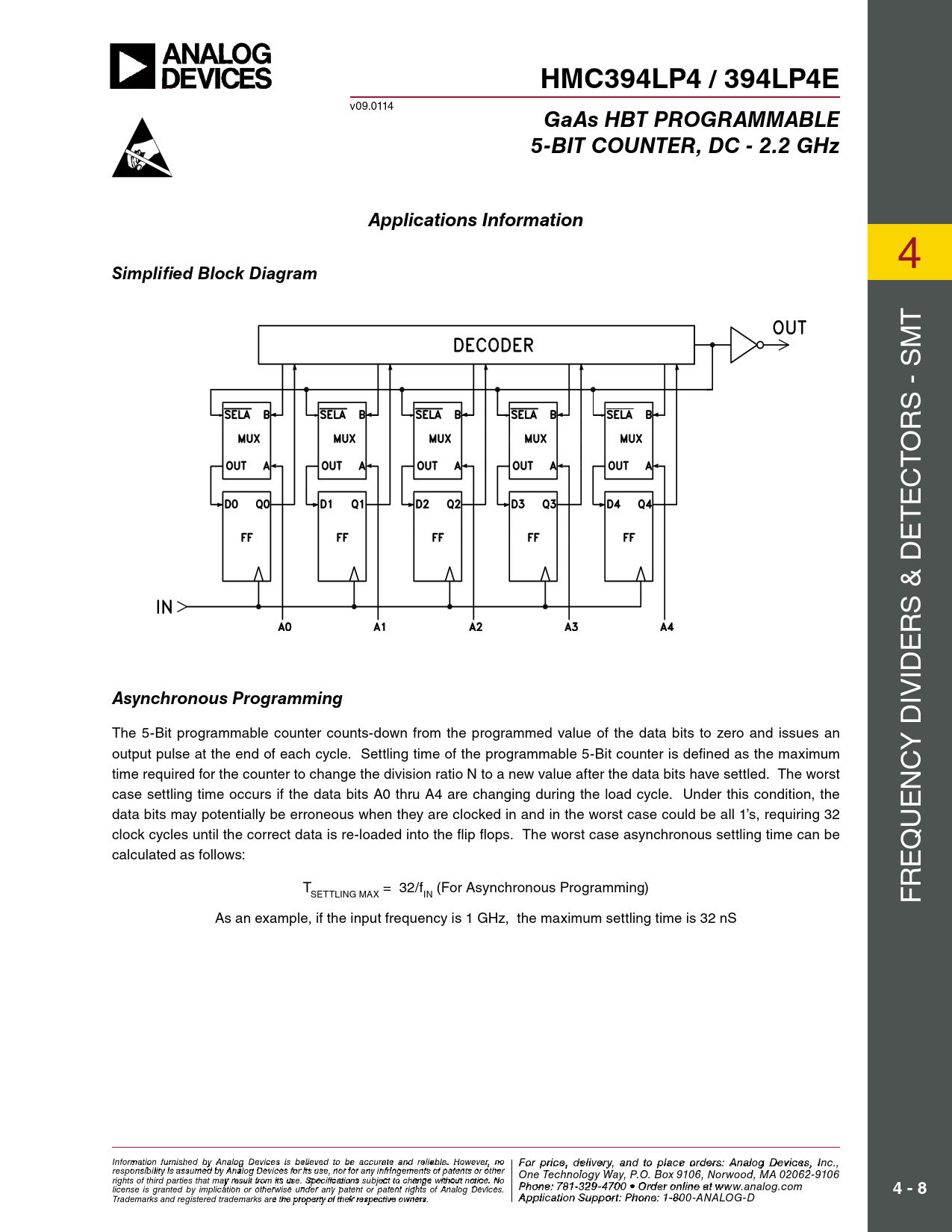 HMC394LP4 / 394LP4E. GaAs HBT PROGRAMMABLE. 5-BIT COUNTER, DC - 2.2 GHz. Applications Information. Simplified Block Diagram