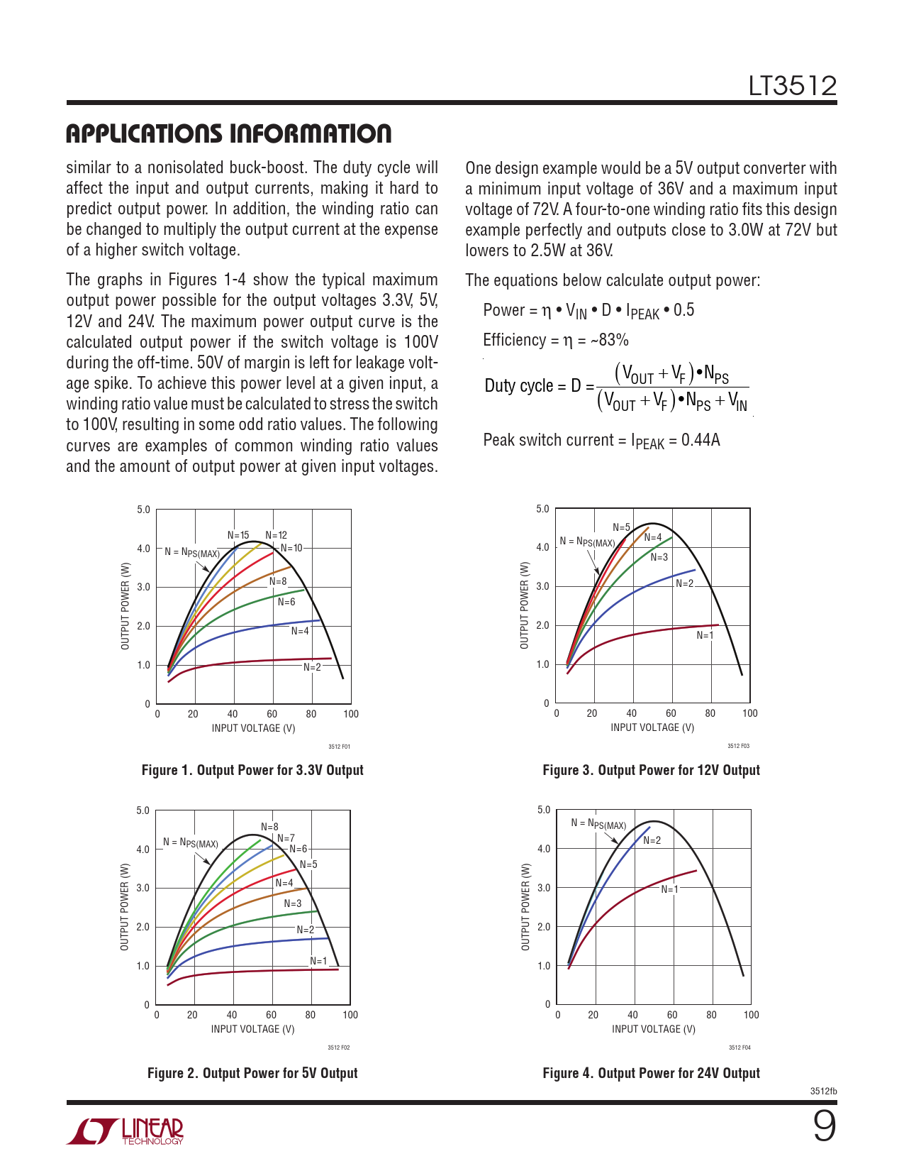 applicaTions inForMaTion. Figure 1. Output Power for 3.3V Output. Figure 3. Output Power for 12V Output