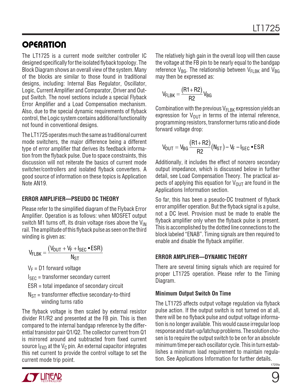 OPERATIO ERROR AMPLIFIER—PSEUDO DC THEORY ERROR AMPLIFIER—DYNAMIC THEORY Minimum Output Switch On Time