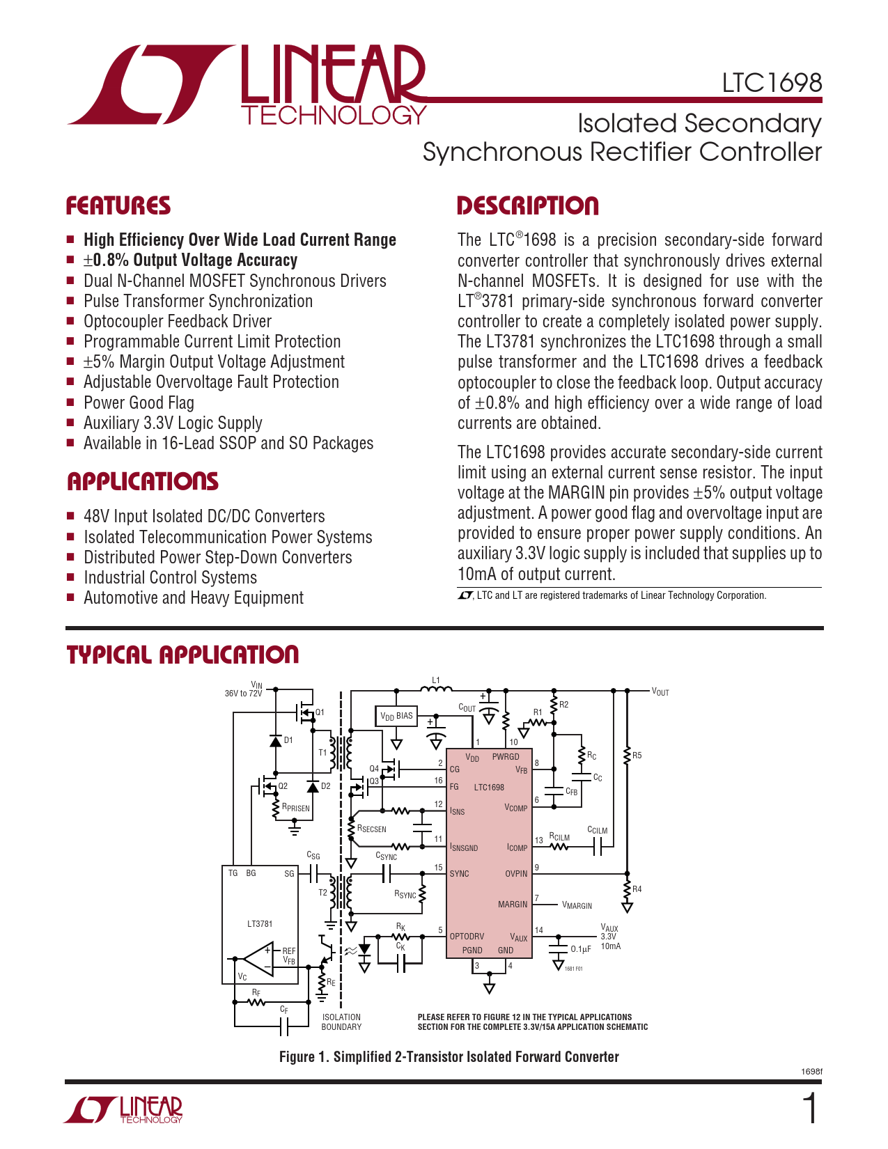 The LTC®1698 is a precision secondary-side forward ■ ±