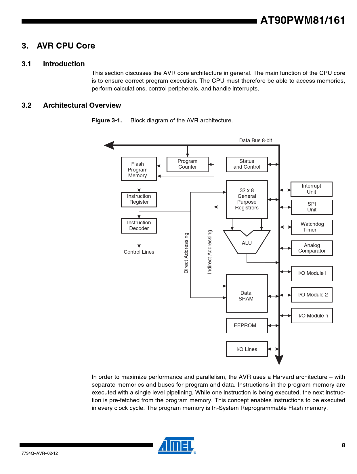 AT90PWM81/161 3. AVR CPU Core 3.1 Introduction