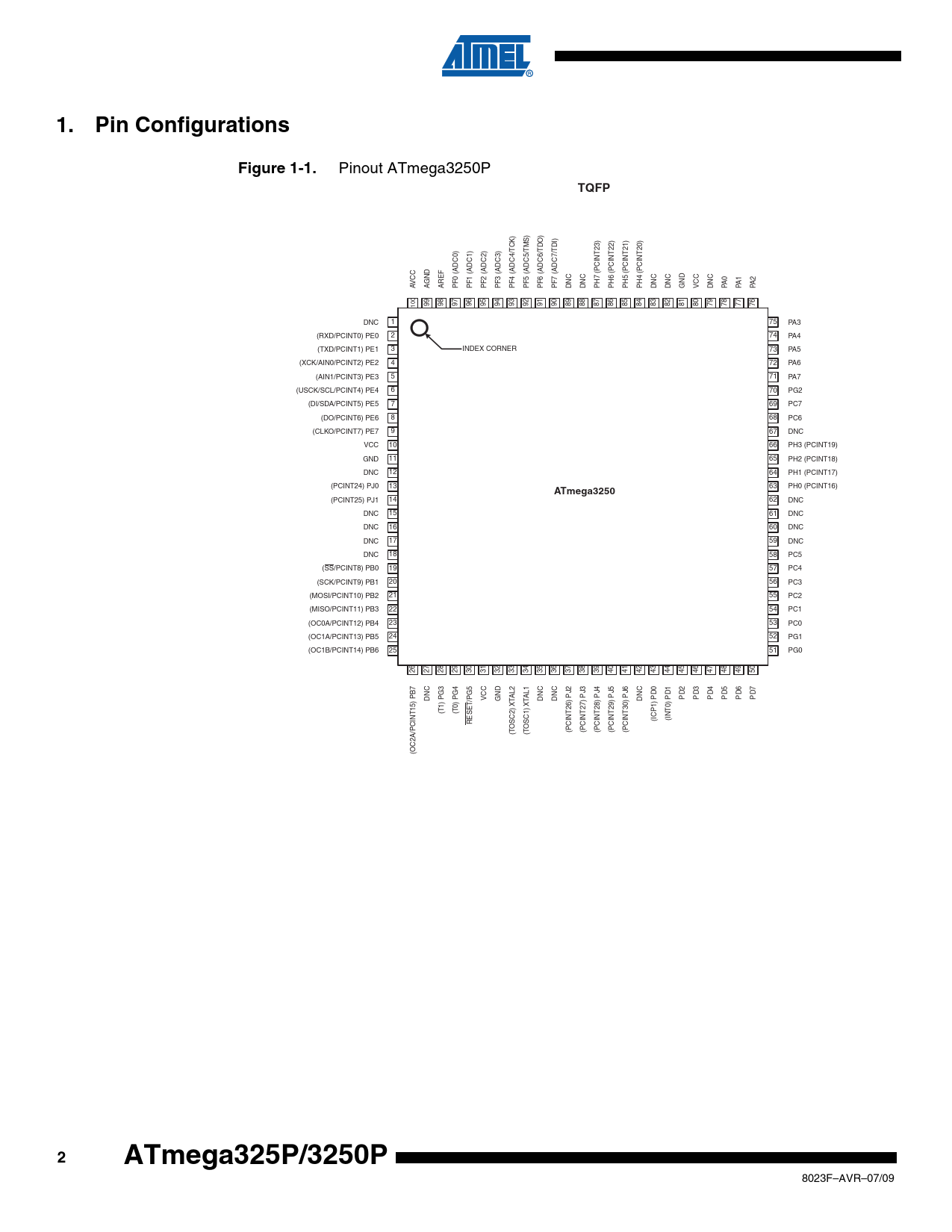 | Seiten / Seite | 364 / 2 — Pin Configurations. Figure 1-1. TQFP. ATmega3250. ATmega325P/3250P |