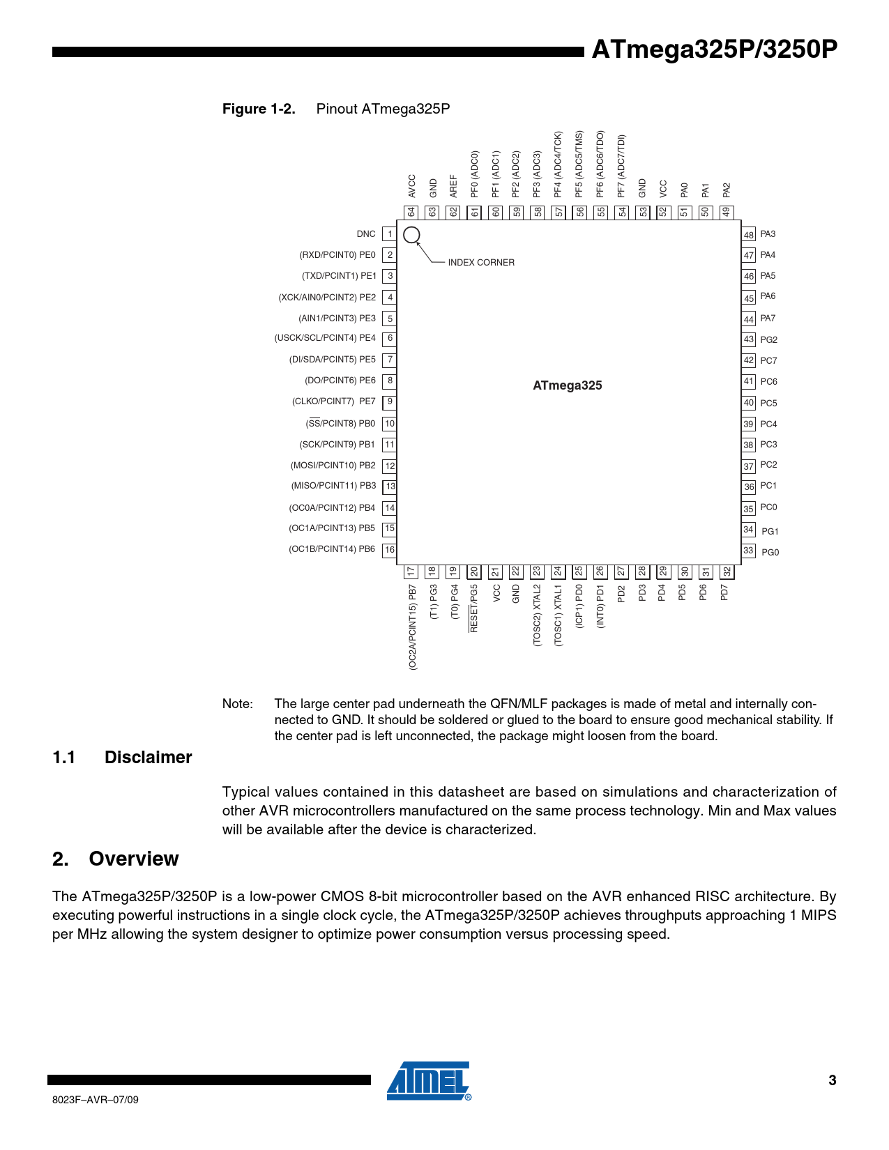 ATmega325P/3250P. Figure 1-2. ATmega325. 1.1. Disclaimer. Overview