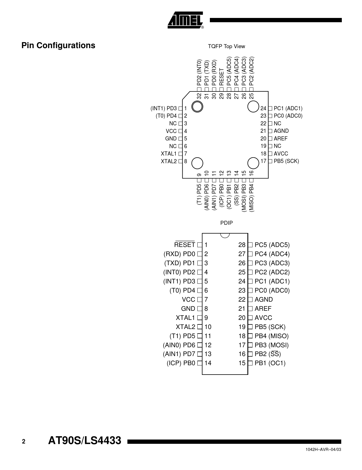 Seiten / Seite126 / 2 — Pin Configurations. AT90S/LS4433