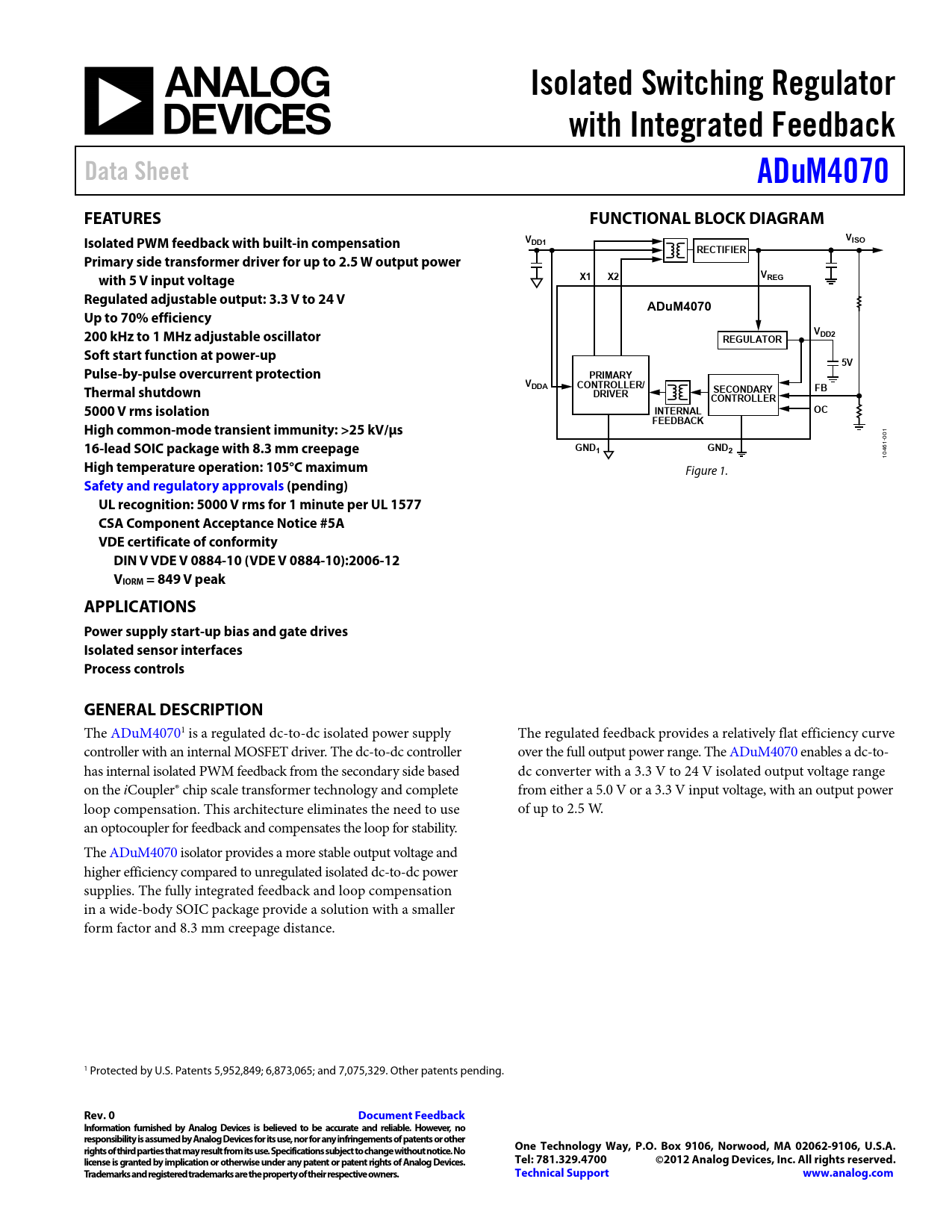 Datasheet ADUM4070 (Analog Devices)