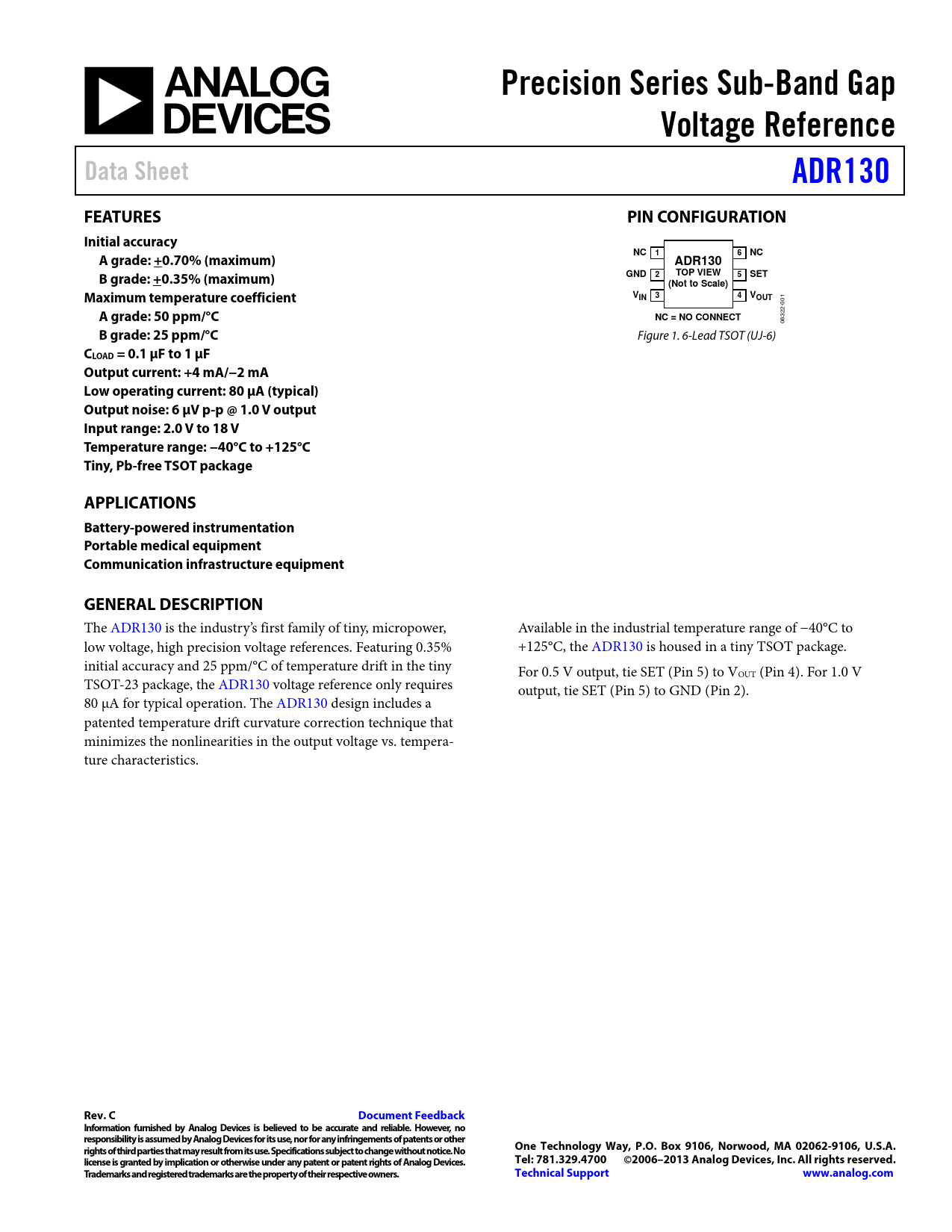 Precision Series Sub-Band Gap. Voltage Reference. Data Sheet. ADR130. FEATURES. PIN CONFIGURATION. Initial accuracy