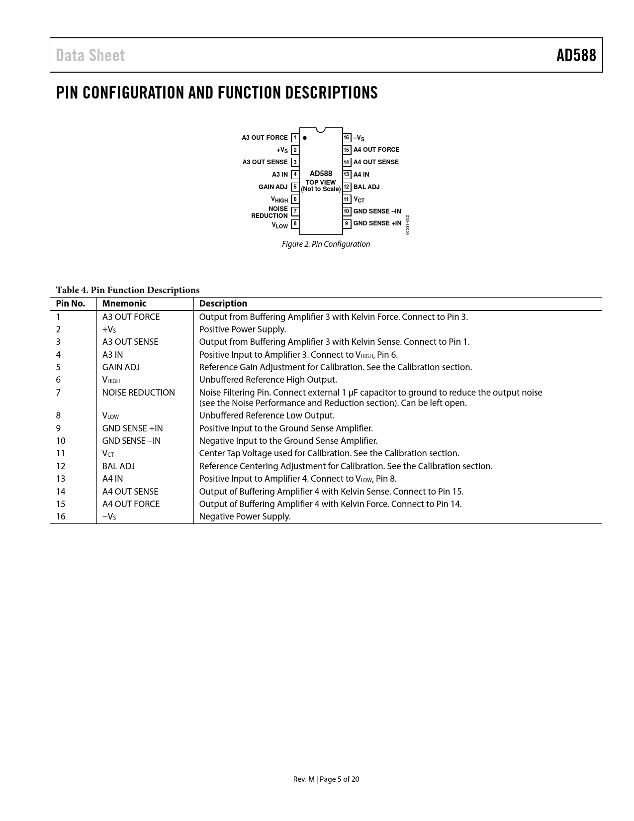 Seiten / Seite20 / 5 — Data Sheet. AD588. PIN CONFIGURATION AND FUNCTION DESCRIPTIONS. A3 OUT …
