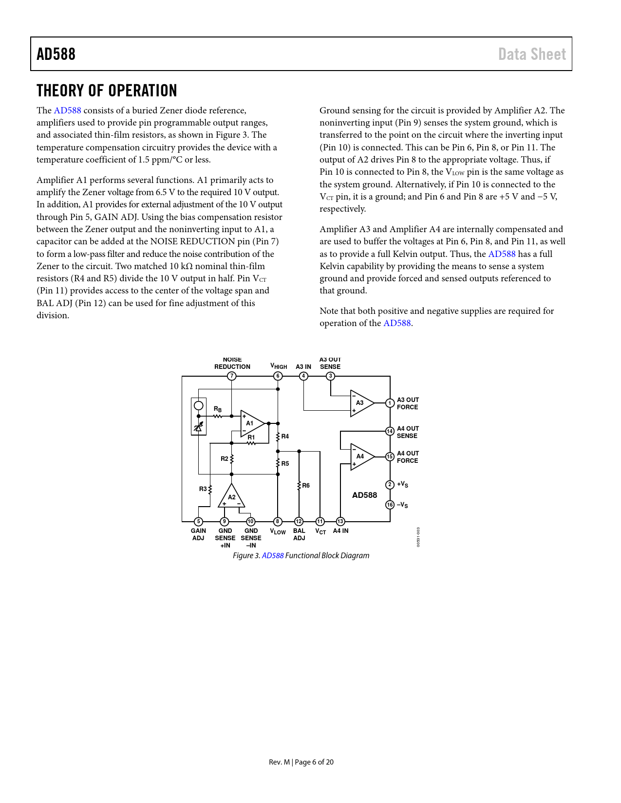 AD588. Data Sheet. THEORY OF OPERATION. NOISE. A3 OUT. REDUCTION. HIGH. A3 IN. SENSE. FORCE. A4 OUT. 15 FORCE. +VS. 16 –VS. GAIN. GND. VLOW. BAL. VCT. A4 IN
