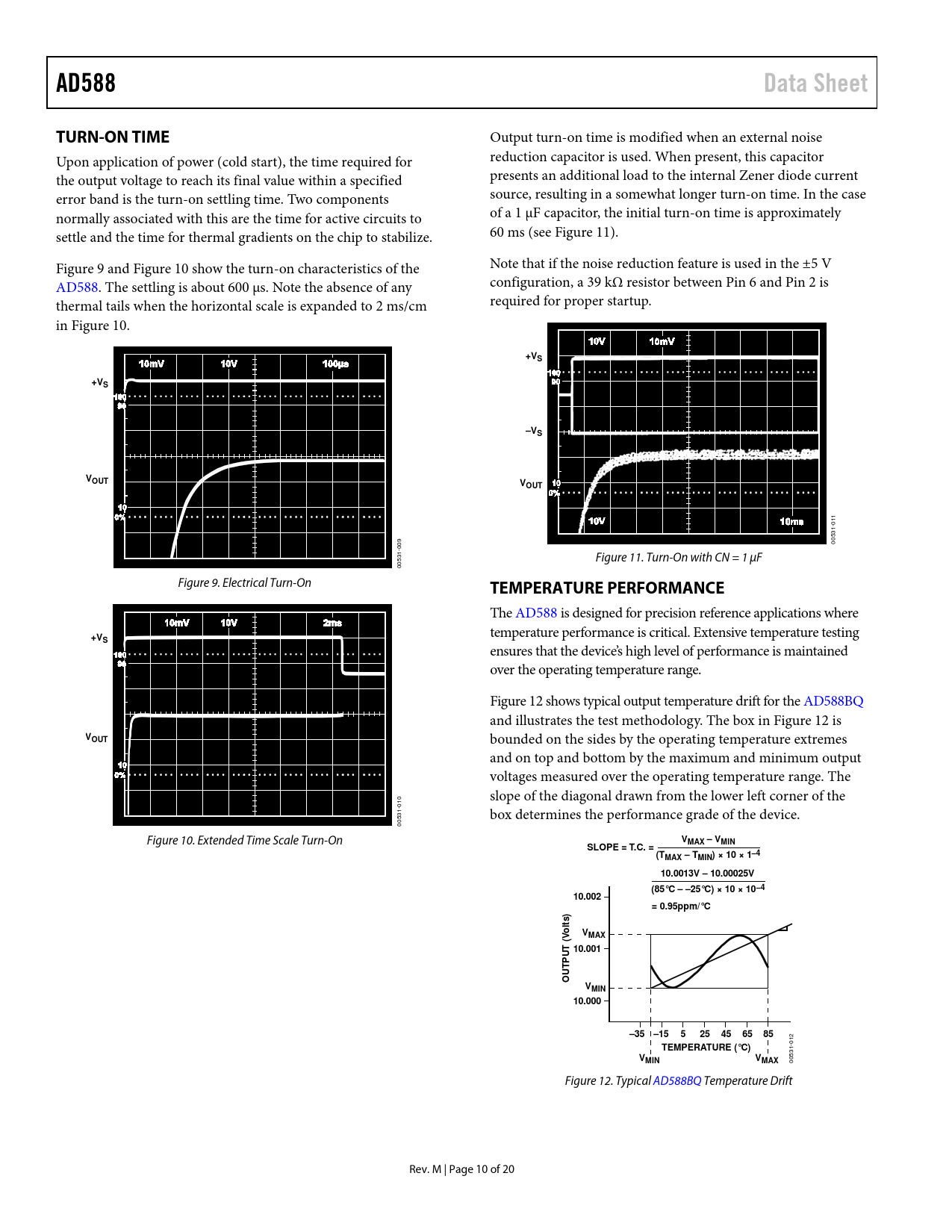 AD588 Data Sheet TURN-ON TIME +VS –VS VOUT TEMPERATURE PERFORMANCE VMAX – VMIN SLOPE = T.C = (TMAX – TMIN) × 10 × 1–4