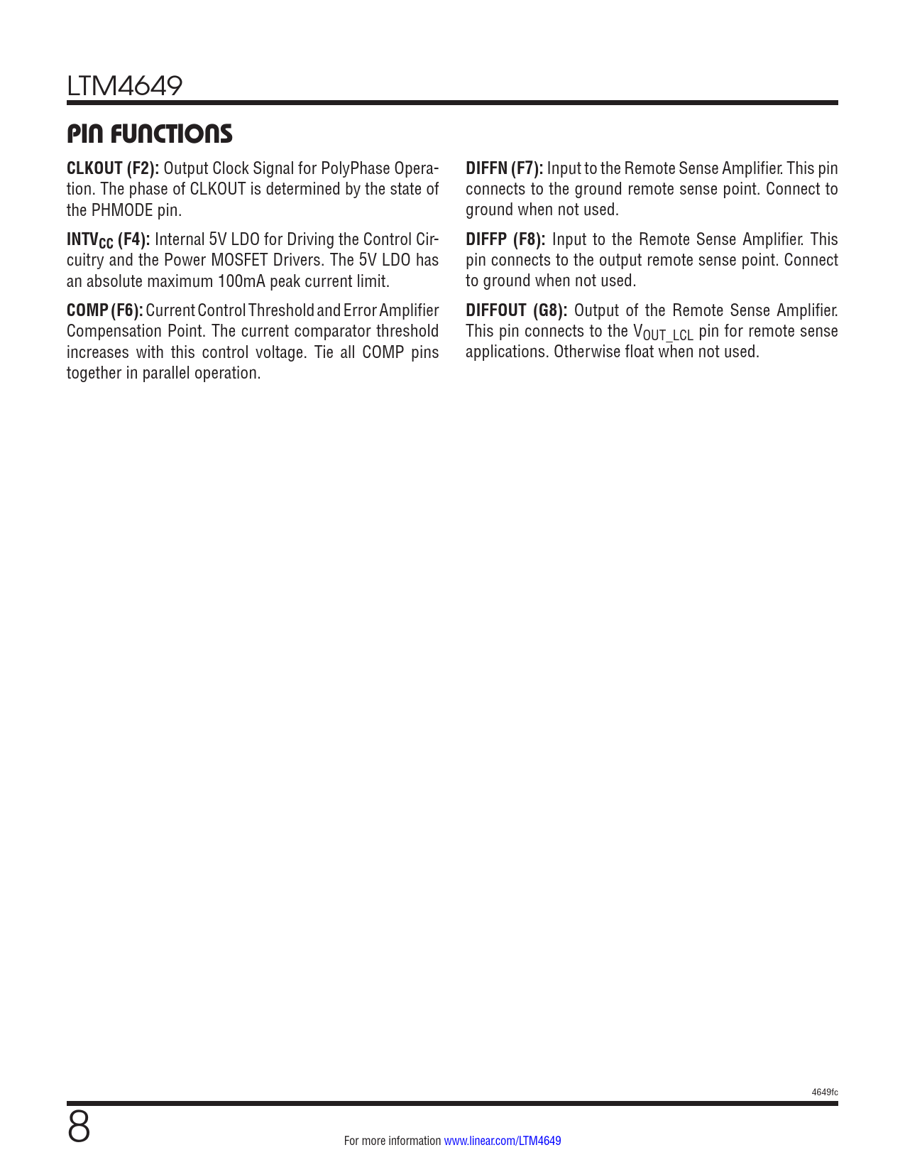 Seiten / Seite30 / 8 — PIN FUNCTIONS CLKOUT (F2):. DIFFN (F7):. INTVCC (F4):. DIFFP (F8):. COMP …