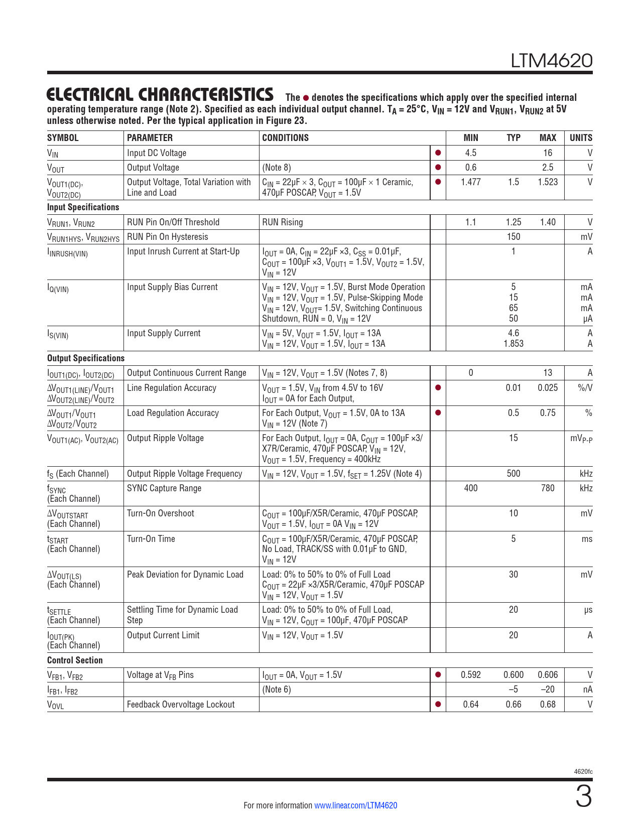 Datasheet LTM4620 (Analog Devices) - 3