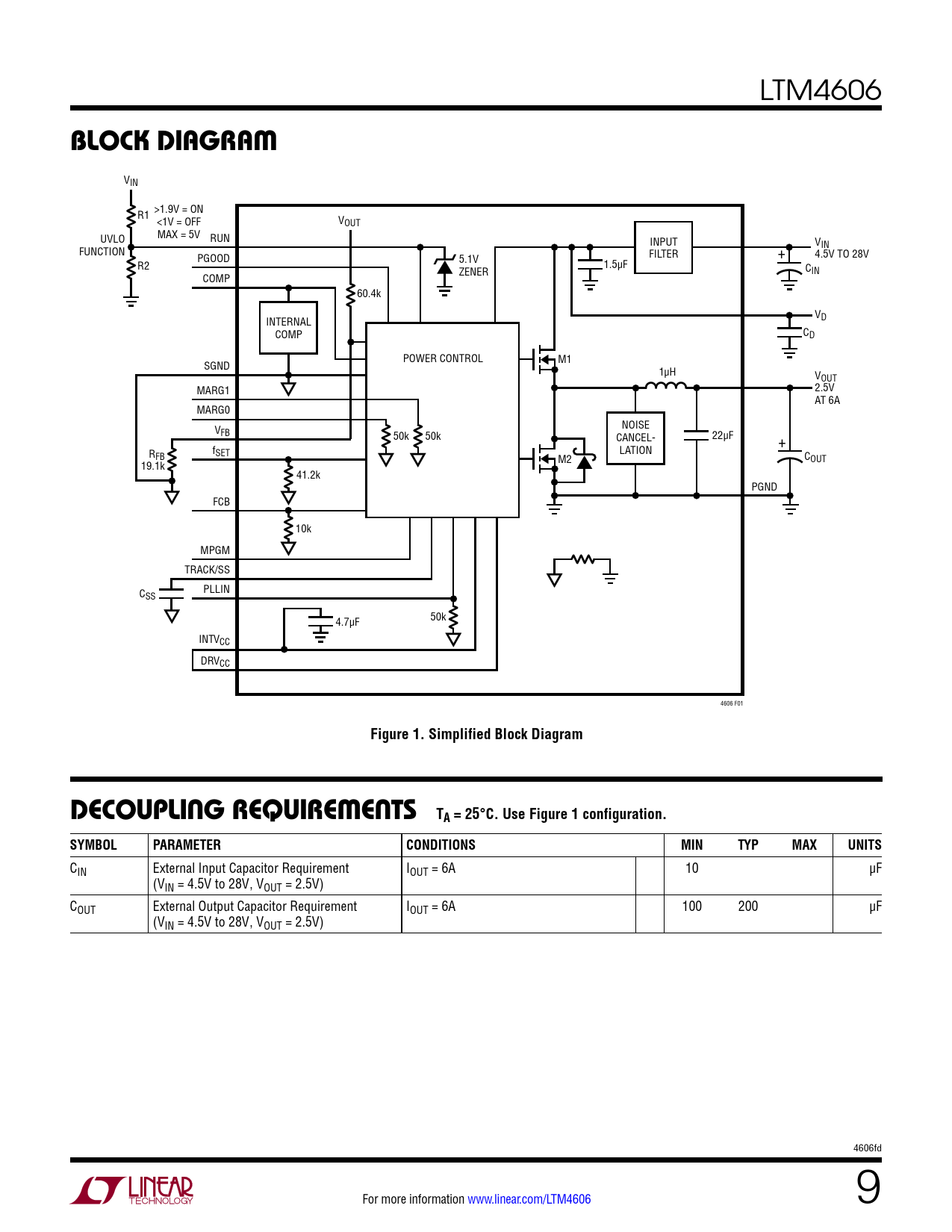 block DiagraM. Figure 1. Simplified Block Diagram. Decoupling requireMenTs TA = 25°C. Use Figure 1 configuration. SYMBOL