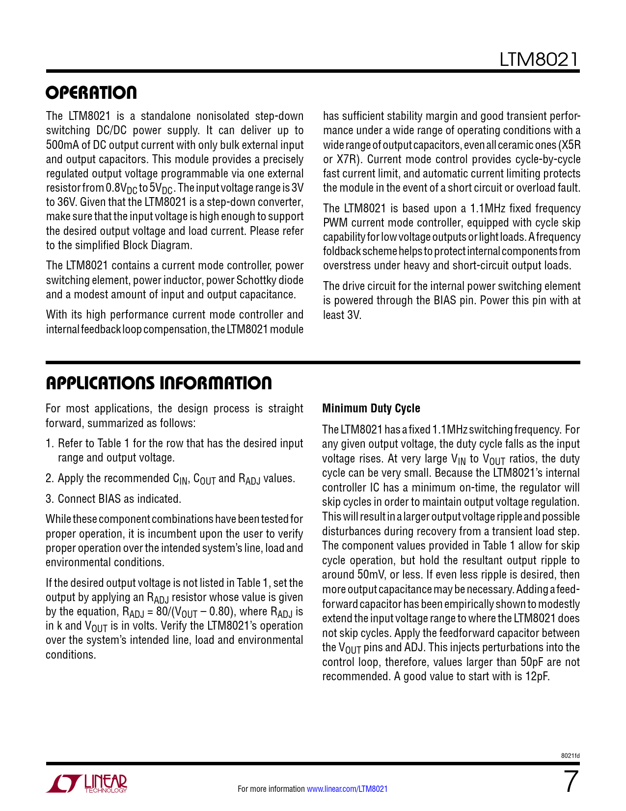 operaTion. applicaTions inForMaTion. Minimum Duty Cycle