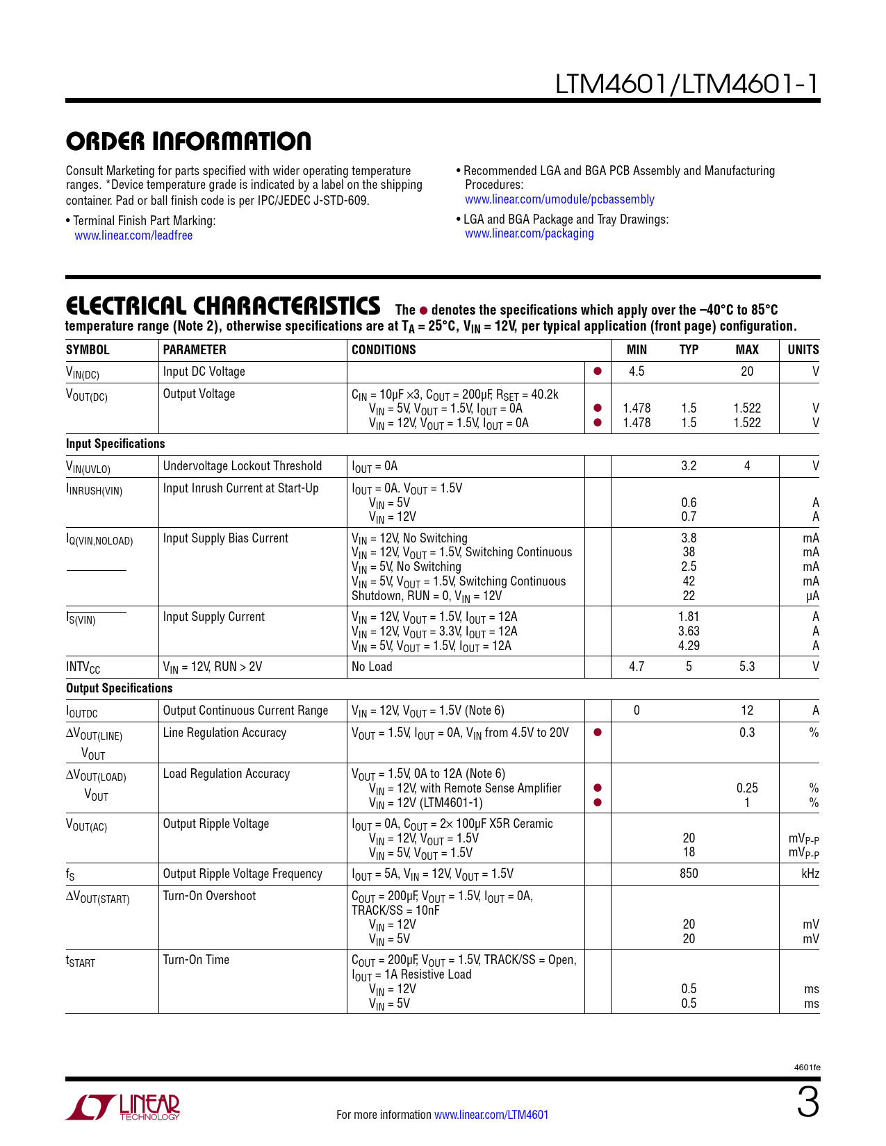 Datasheet LTM4601, LTM4601-1 (Analog Devices) - 3