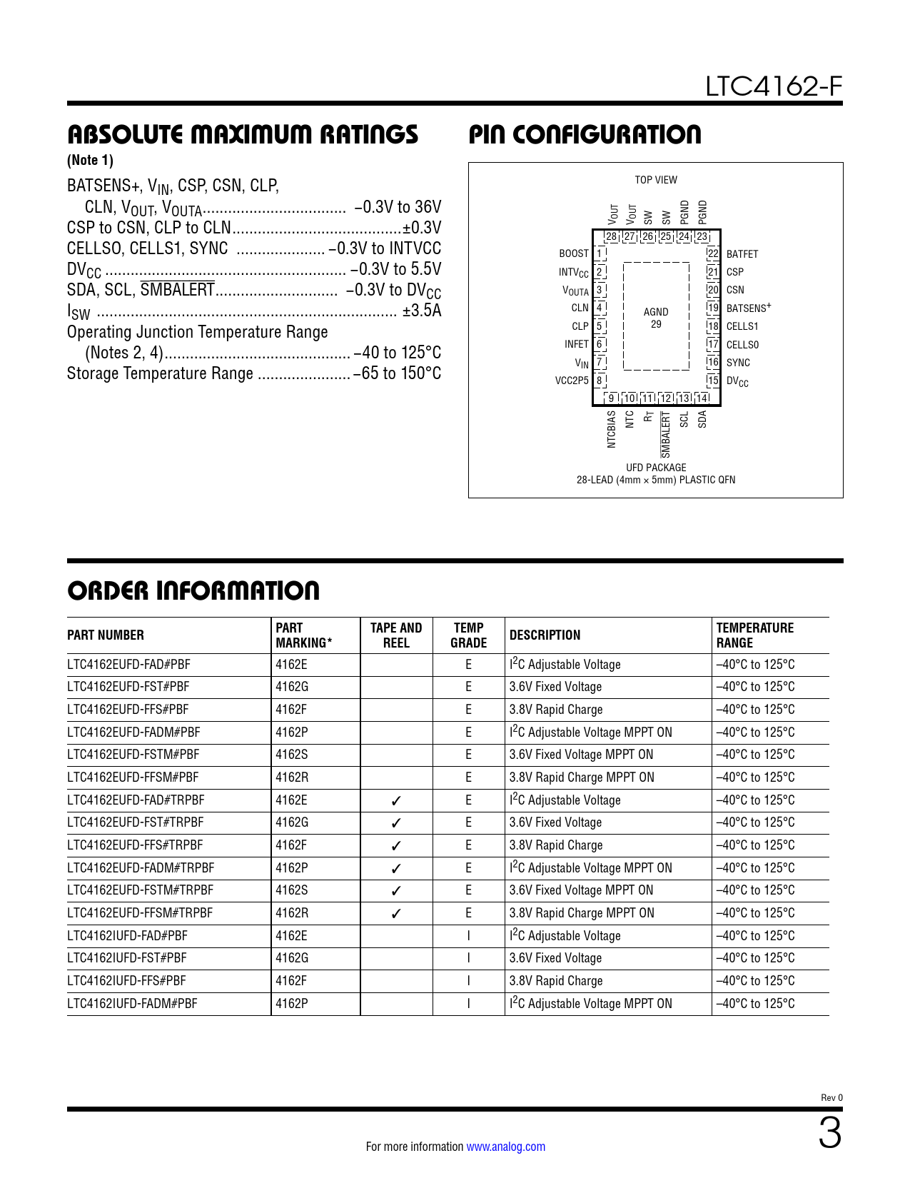 Datasheet LTC4162-F (Analog Devices) - 3
