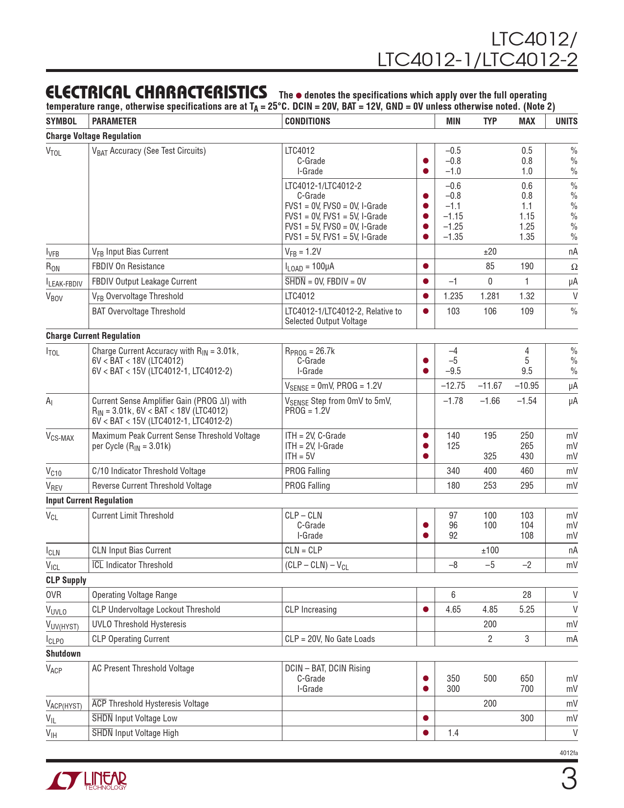 LTC4012/ LTC4012-1/LTC4012-2 e lectrical characteristics
