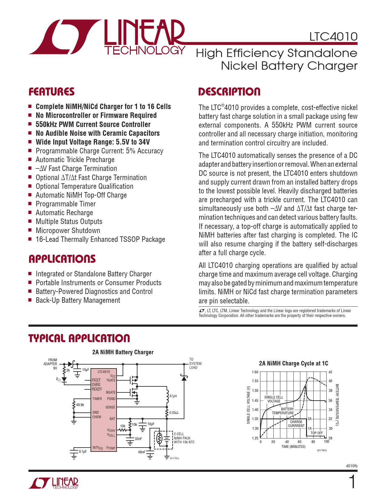 LTC4010 High Efficiency Standalone Nickel Battery Charger FeaTures DescripTion n
