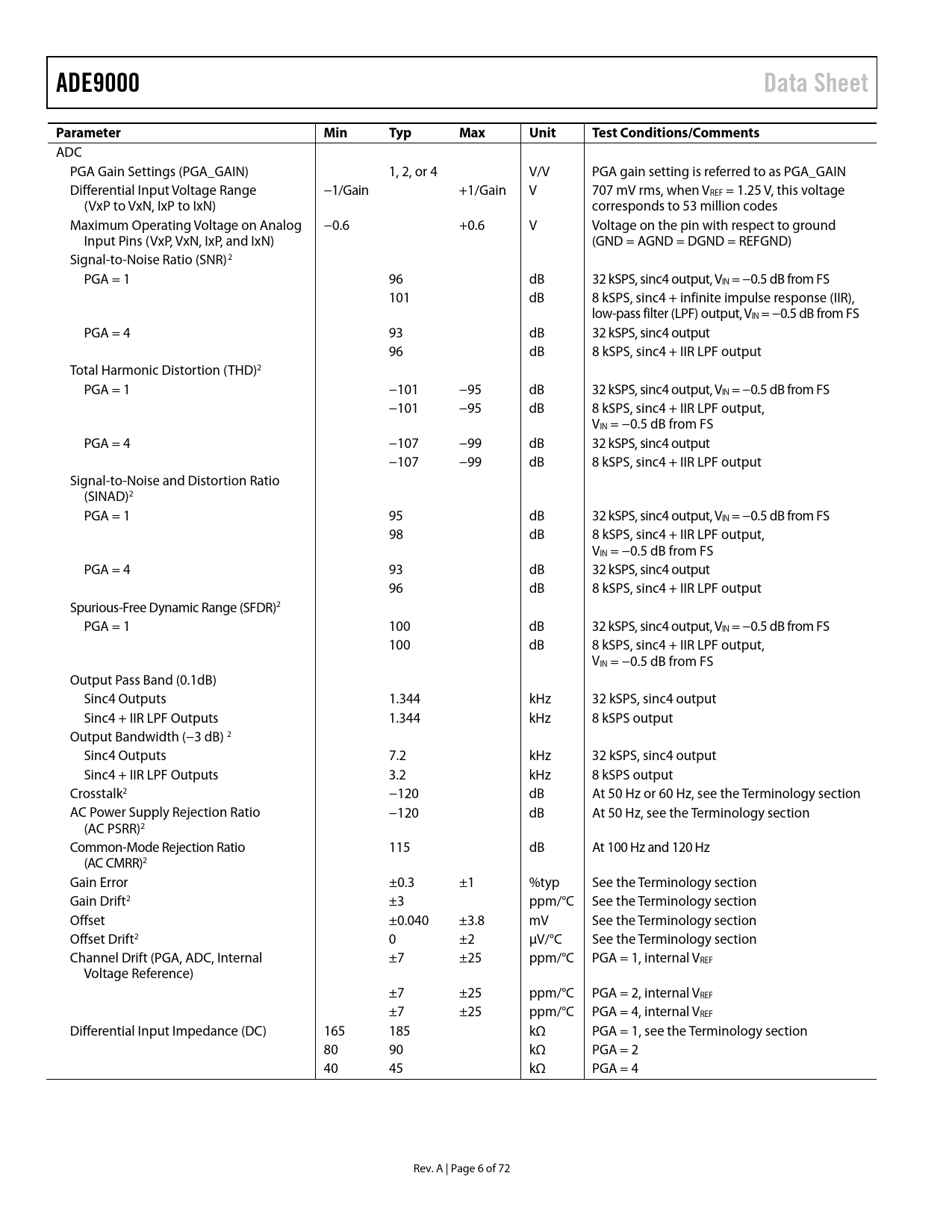 ADE9000. Data Sheet. Parameter. Min. Typ. Max. Unit. Test Conditions/Comments