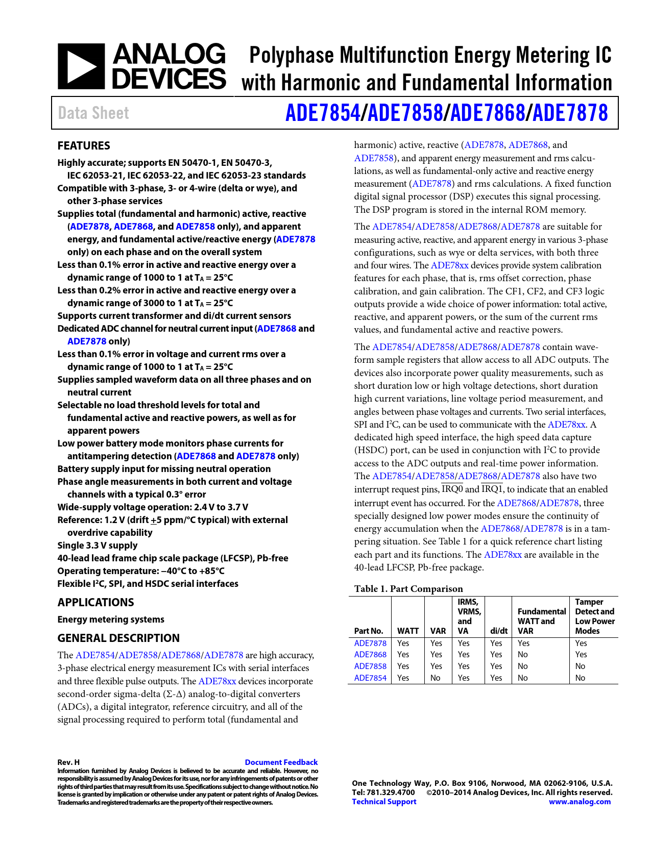 Datasheet ADE7854, ADE7858, ADE7868, ADE7878 (Analog Devices)