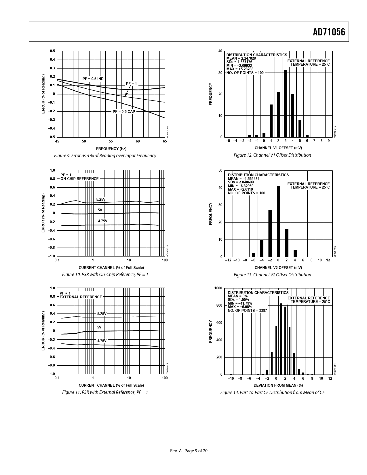 Figure 10. PSR with On-Chip Reference, PF = 1 Figure 13. Channel V2 Offset Distribution