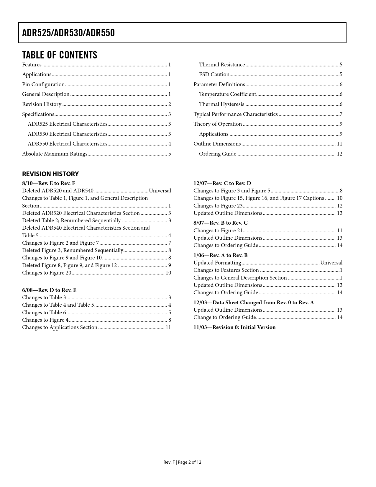 Seiten / Seite12 / 2 — ADR525/ADR530/ADR550. TABLE OF CONTENTS. REVISION HISTORY. 8/10—Rev. E to …