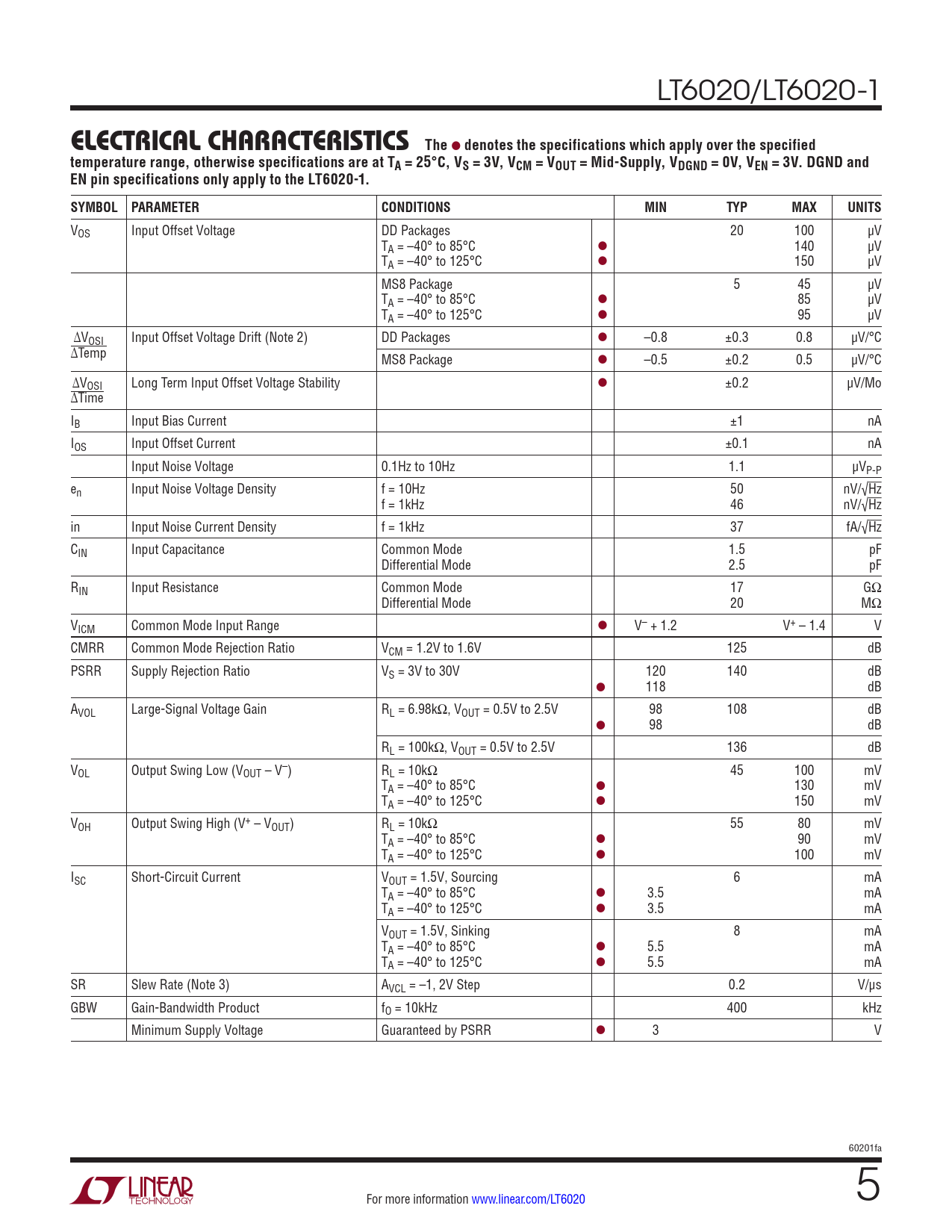 Datasheet LT6020, LT6020-1 (Analog Devices) - 5