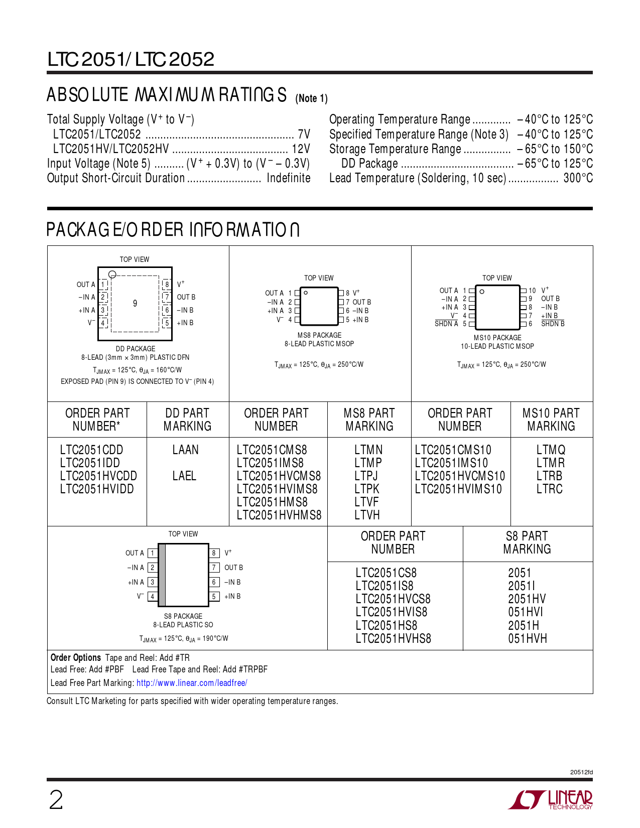 Datasheet LTC2051, LTC2052 (Analog Devices) - 2