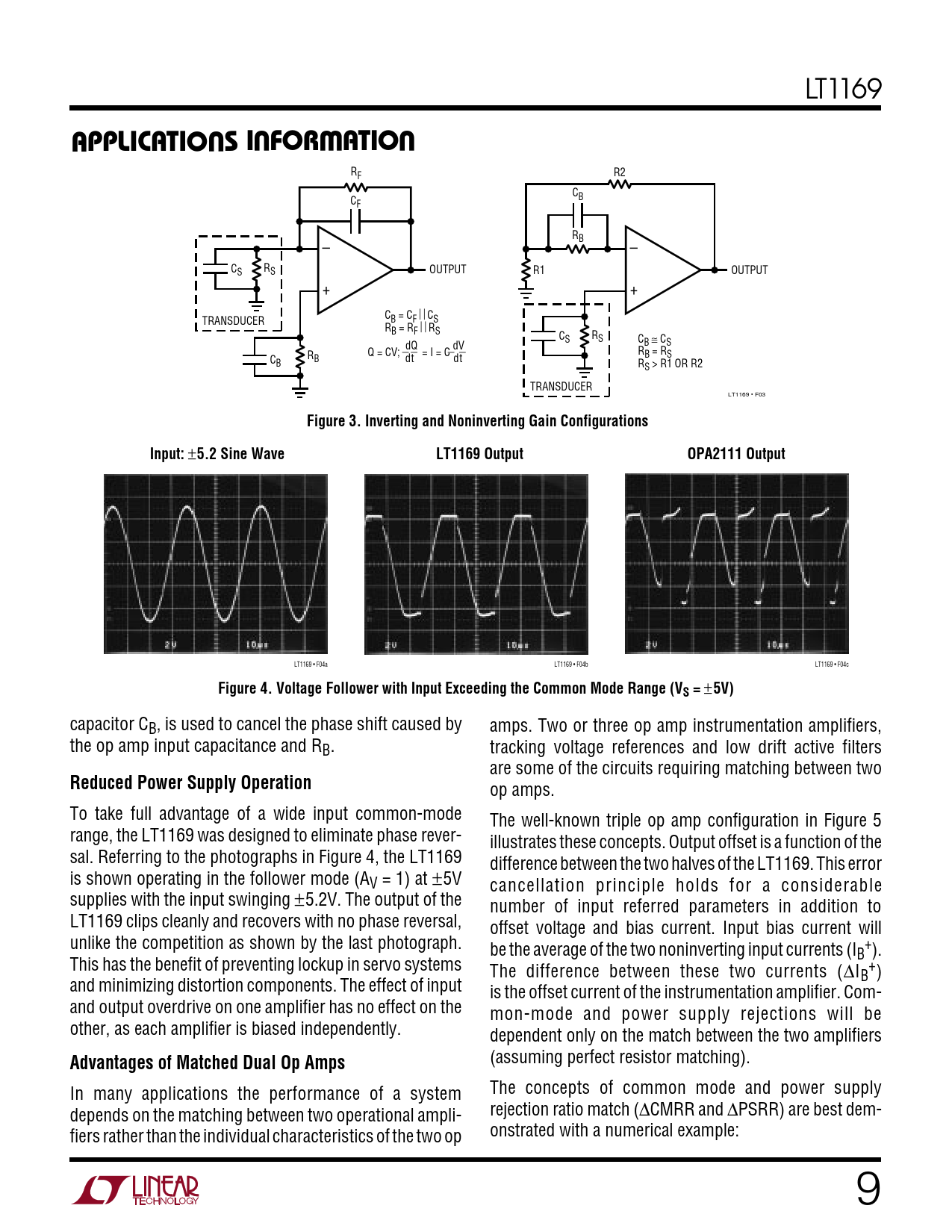 APPLICATI. S I FOR ATIO. Figure 3. Inverting and Noninverting Gain Configurations. Input:. 5.2 Sine Wave. LT1169 Output