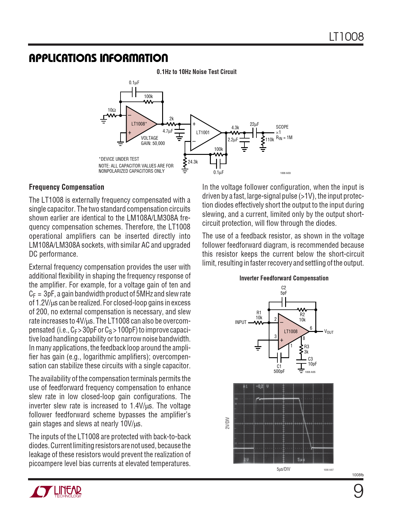 APPLICATIO S I FOR ATIO. 0.1Hz to 10Hz Noise Test Circuit. Frequency Compensation. Inverter Feedforward Compensation