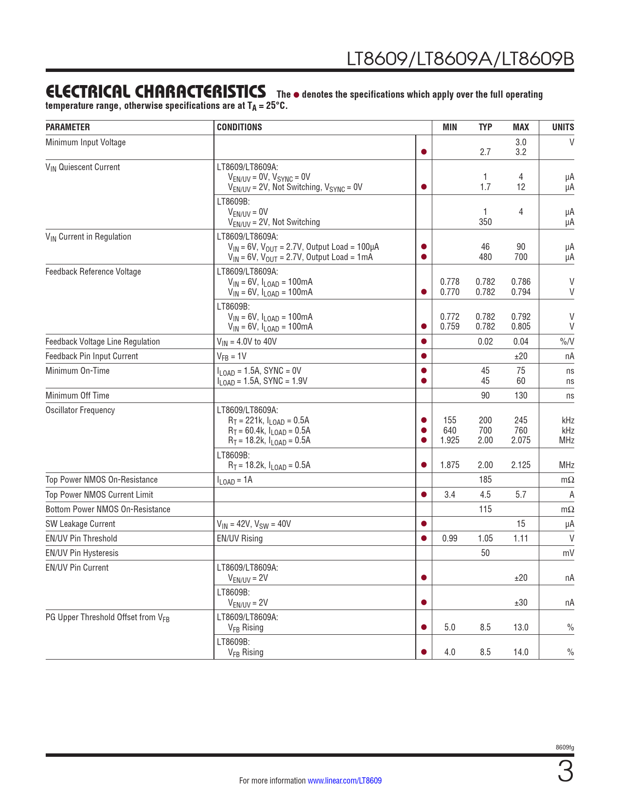 Datasheet LT8609, LT8609A, LT8609B (Analog Devices) - 3
