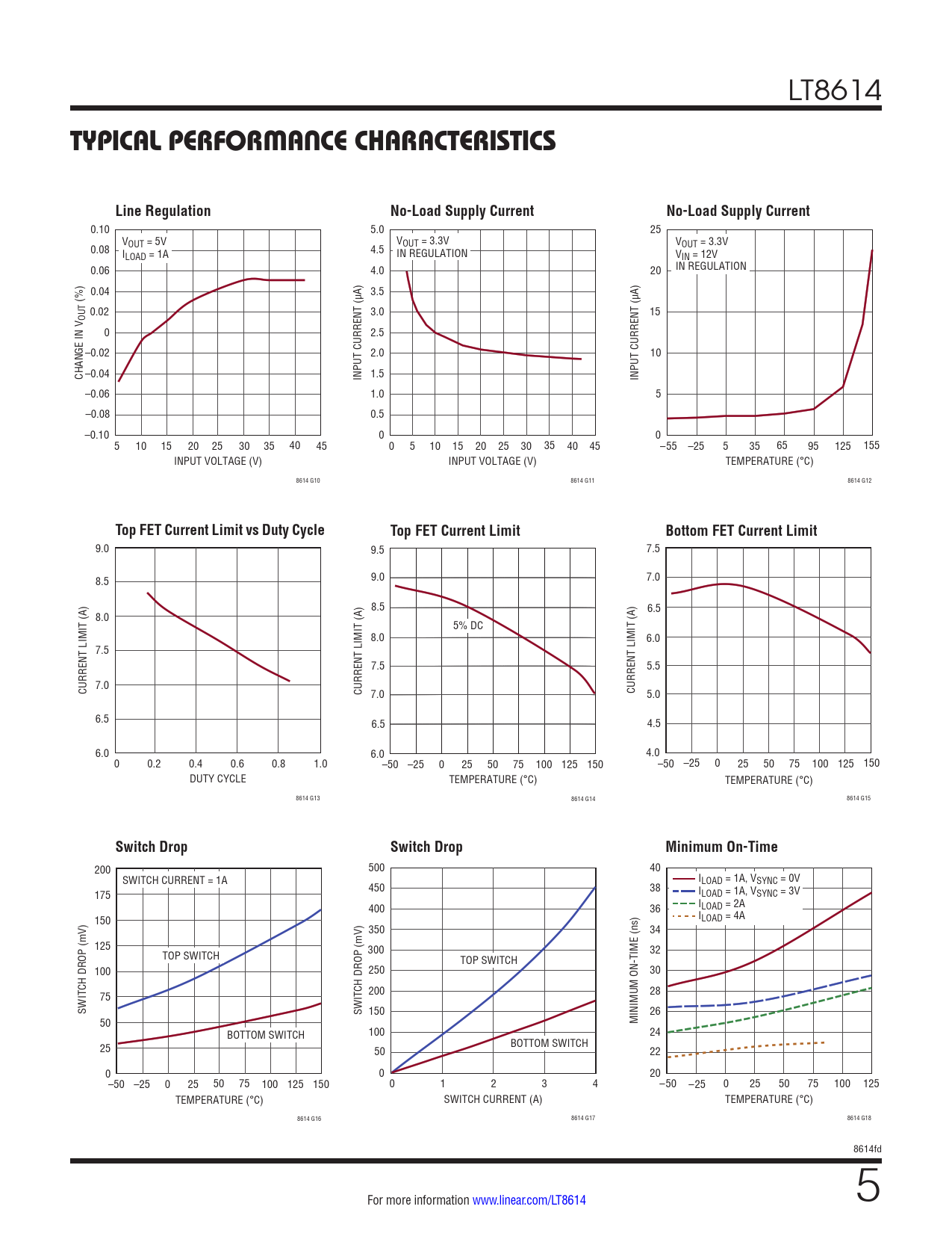 Typical perForMance characTerisTics. Line Regulation. No-Load Supply Current. Top FET Current Limit vs Duty Cycle