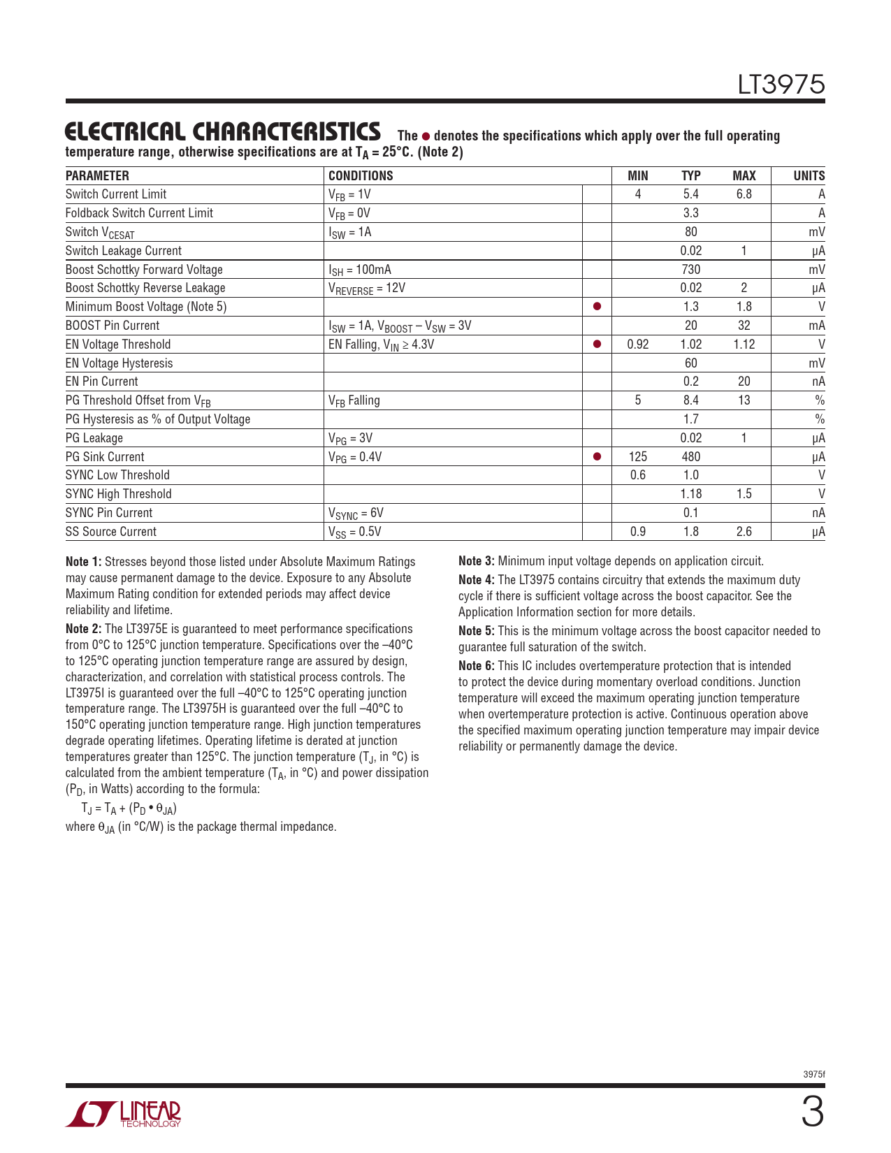 The LT3975 contains circuitry that extends the maximum duty Maximum Rating condition for extended periods may affect device cycle if there is sufficient voltage across the boost capacitor. See the reliability and lifetime. Application Information section for more details.