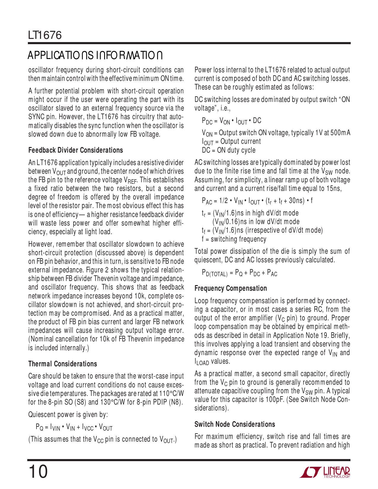 APPLICATIONS INFORMATION Feedback Divider Considerations Frequency Compensation Thermal Considerations
