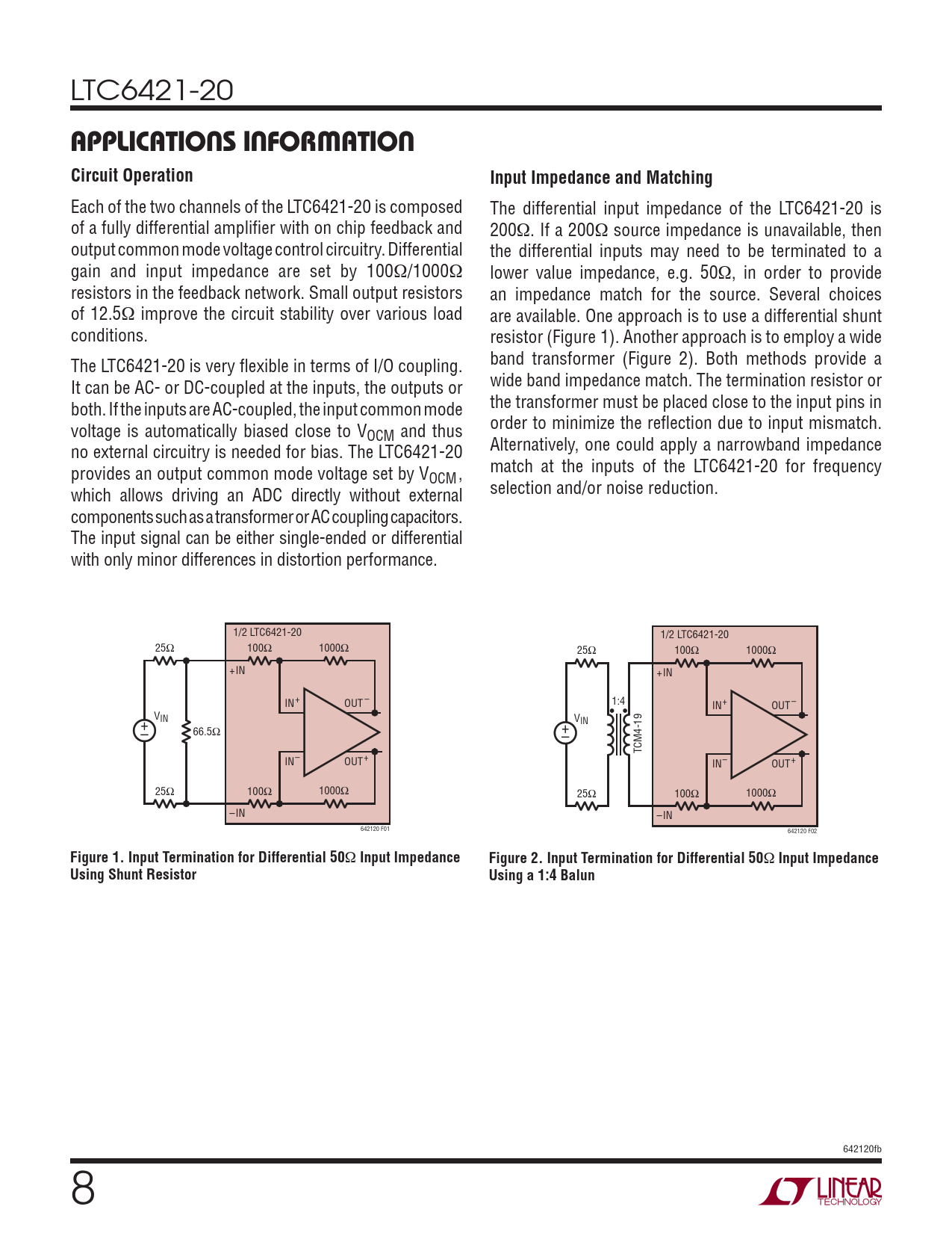 APPLICATIONS INFORMATION Circuit Operation Input Impedance and Matching Figure 1 Input Termination for Differential 50