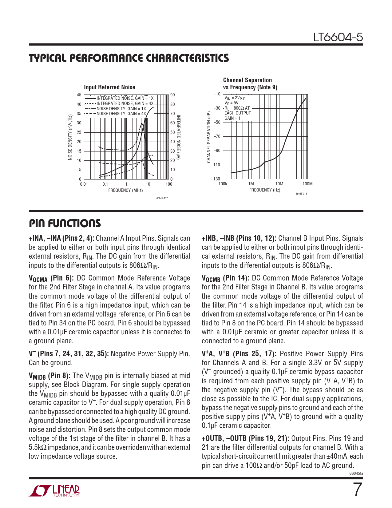 TYPICAL PERFORMANCE CHARACTERISTICS. Channel Separation. Input Referred Noise. vs Frequency (Note 9). PIN FUNCTIONS