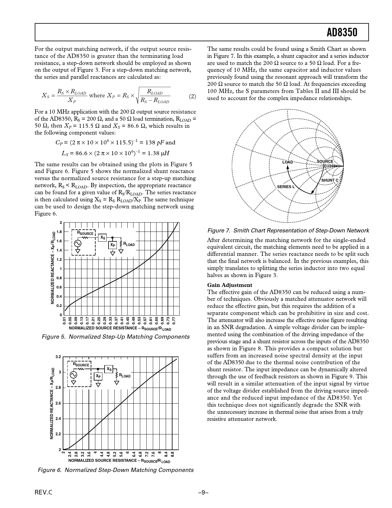 AD8350. LOAD. SOURCE. SHUNT C. SERIES L. 1.8. 1.6. 1.4. 1.2. ANCE – X CT. 0.8. Gain Adjustment. 0.6. 0.4. NORMALIZED REA 0.2. 0.01. 0.05. 0.09. 0.13. 0.17