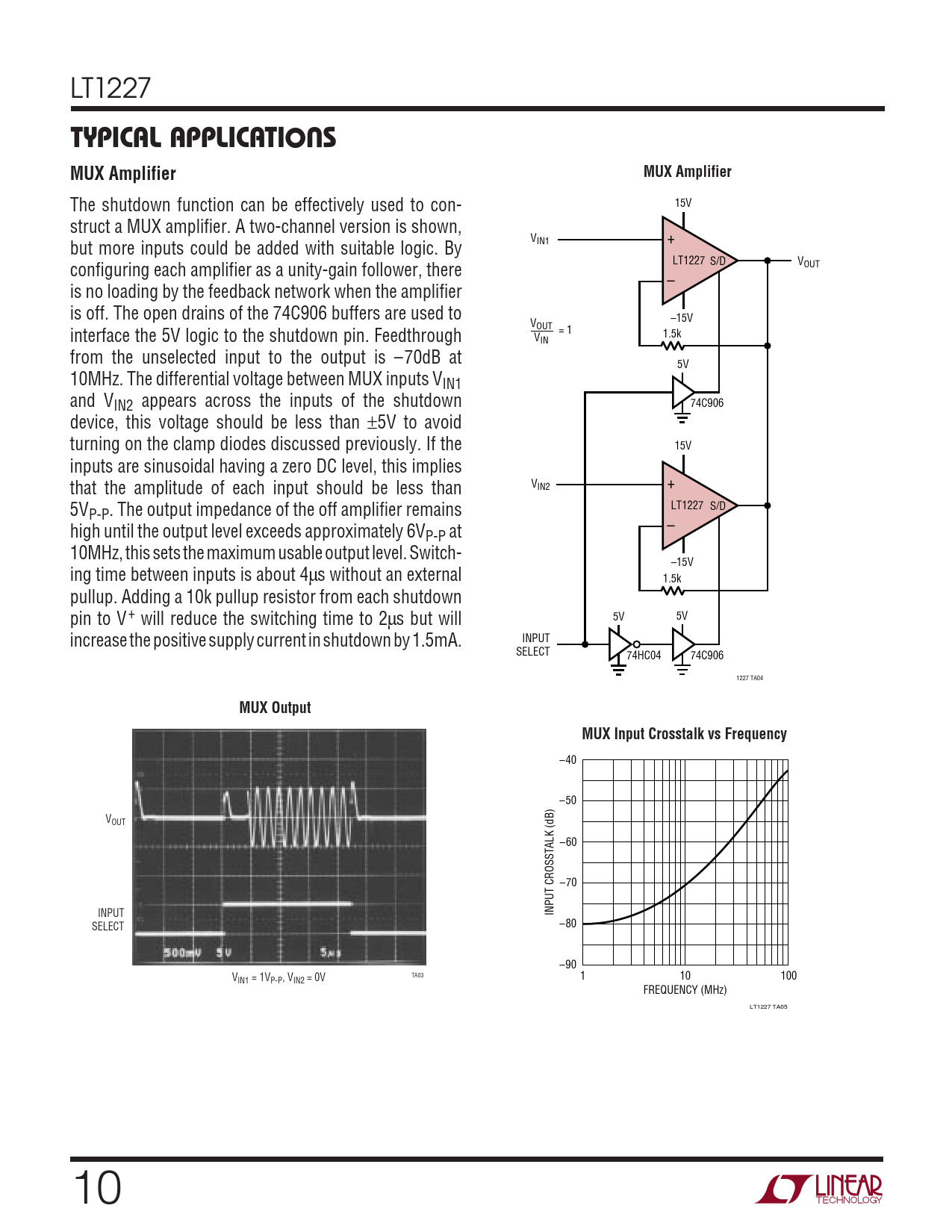 TYPICAL APPLICATI. MUX Amplifier. MUX Output. MUX Input Crosstalk vs Frequency