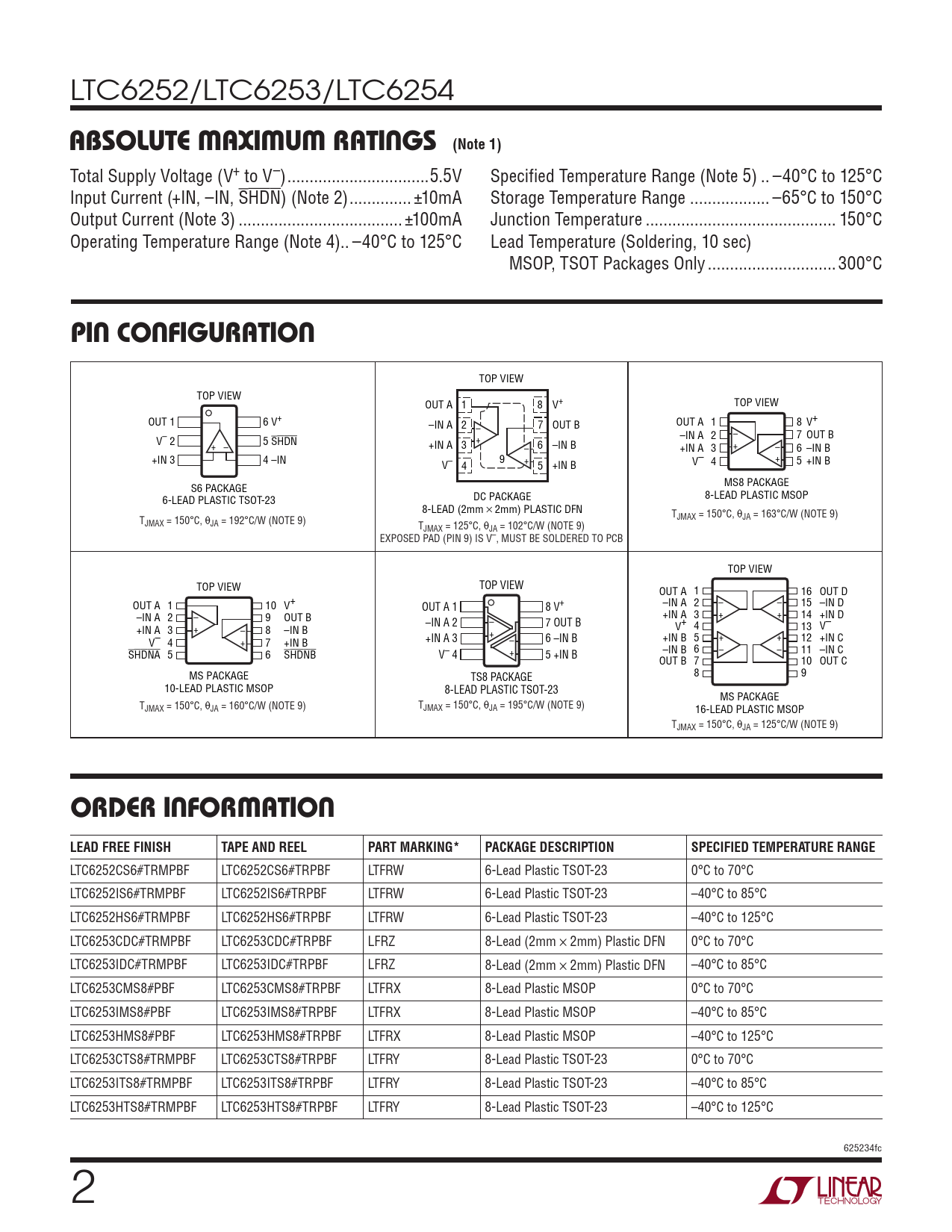 Datasheet LTC6252, LTC6253, LTC6254 (Analog Devices) - 2