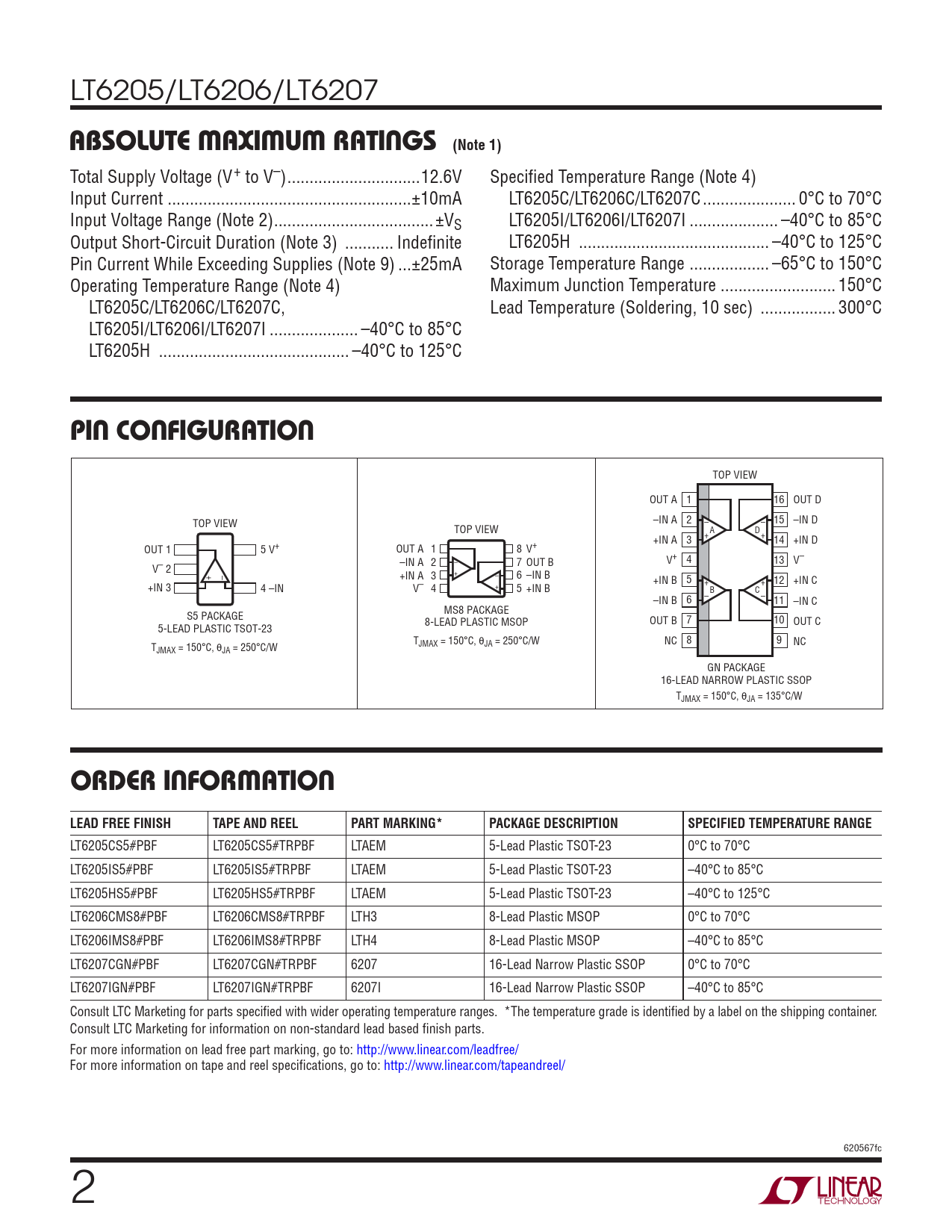 Datasheet LT6205, LT6206, LT6207 (Analog Devices) - 2